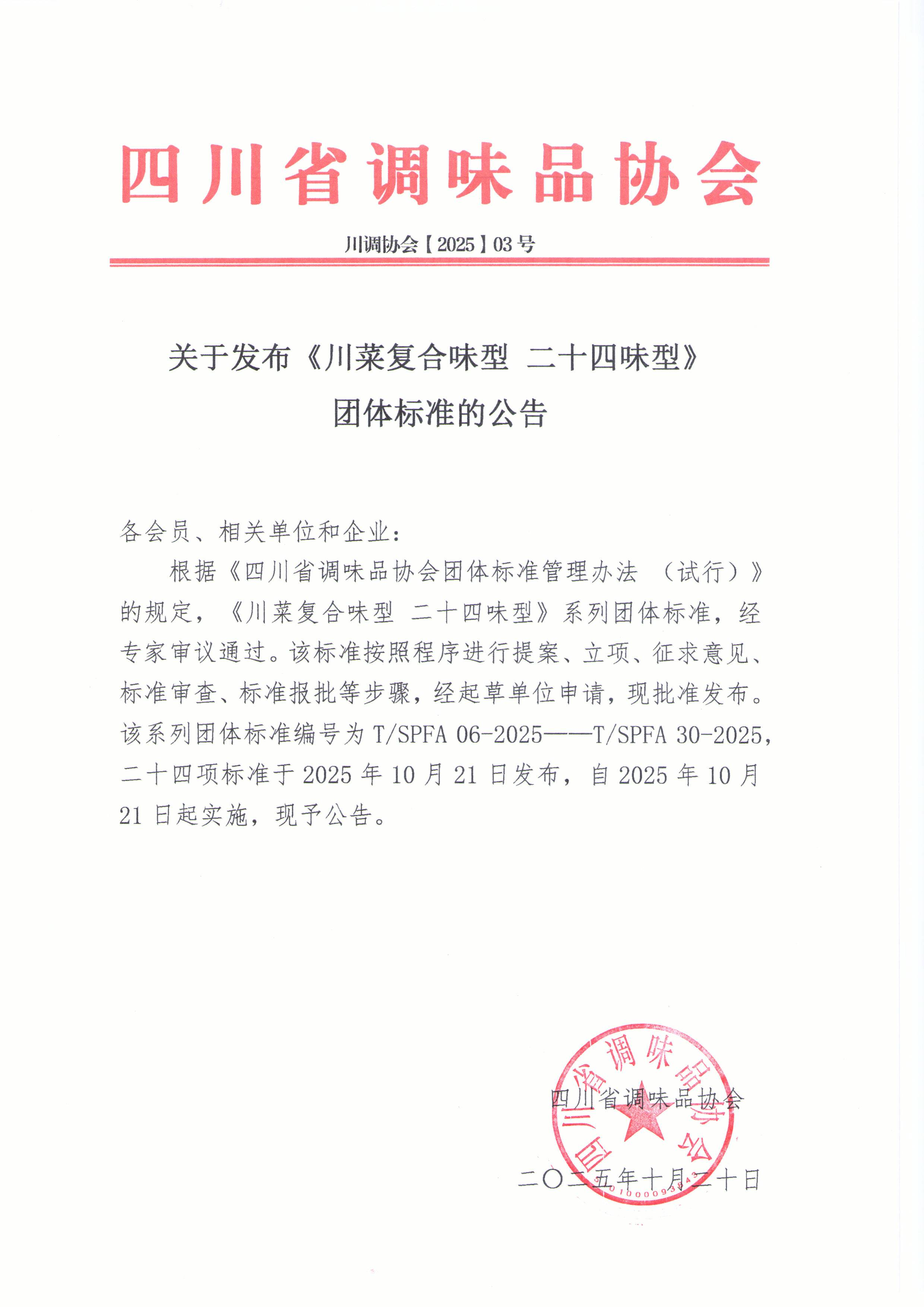 10月21日,《川菜复合味型 二十四味型》系列团体标准在成都博物馆举行的第四届豪吉川味科学大会上正式发布。这套由四川省调味品协会发起、四川旅游学院执笔、豪吉作为唯一企业领衔制定,众多头部川调企业共同参与的标准文件,首次为川菜的二十四种经典味型建立了系统化、量化的技术规范,标志着川菜从依赖厨师经验的“手艺时代”迈入了可量化、可复制的“标准时代”。