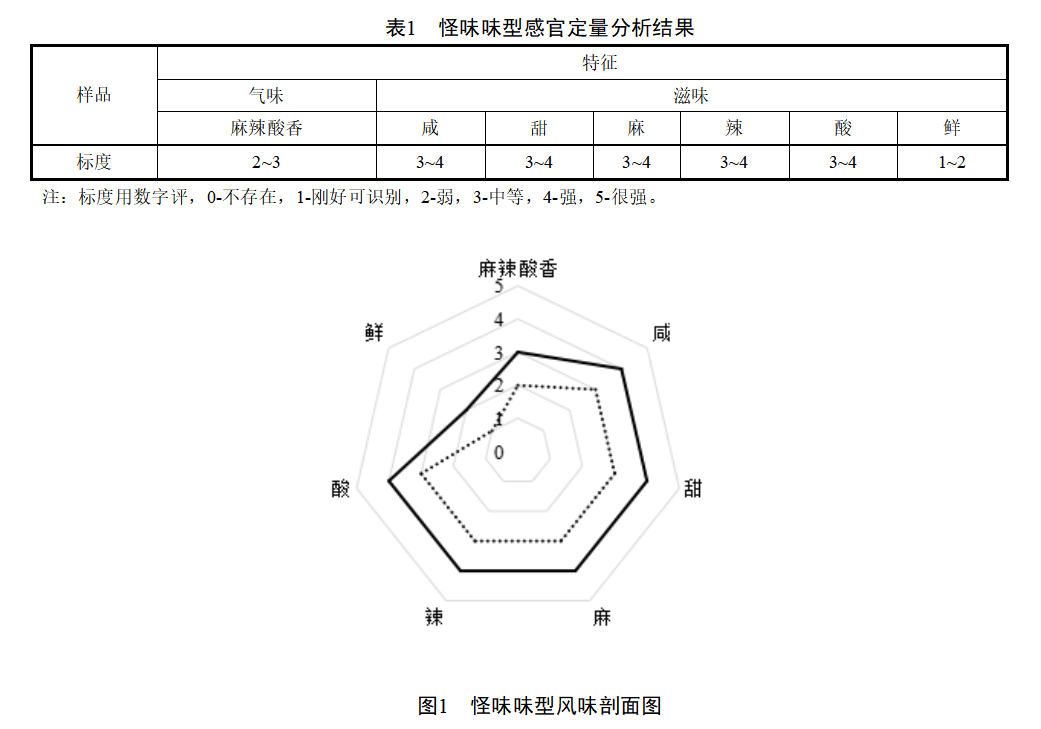 翻阅厚达数百页的标准文件,可以发现其中数据支撑详实可靠。例如在《怪味味型》标准中,文件明确显示其七种味觉要素的强度配比:其中咸、甜、麻、辣、酸五种味觉均需达到“中等至强”的强度区间,而鲜味则维持在“刚好可识别至弱”的范围内。这种精细化的量化描述,让长期以来“只可意会不可言传”的怪味首次有了明确的技术参数。