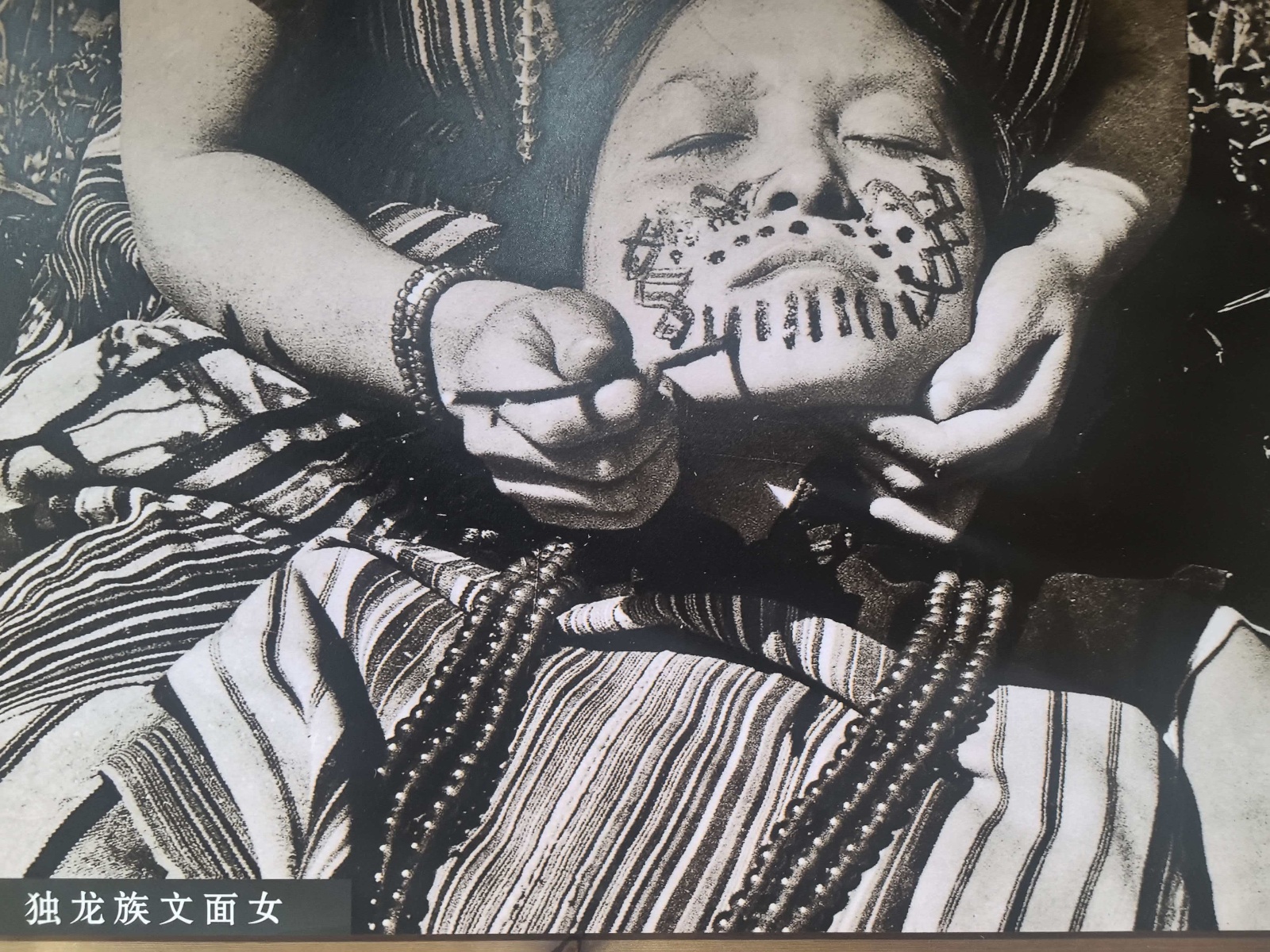 独龙族博物馆展出实物464件(套)、重点文物20件,其中包括新石器时代文物、独龙族全套纺织机具等,为从事物质与非物质文化的研究者提供了宝贵资料。独龙族传统文化“活化石”——文面女人照片的展出,更是令人直观地感受到民族文化所带来的神秘与震撼。