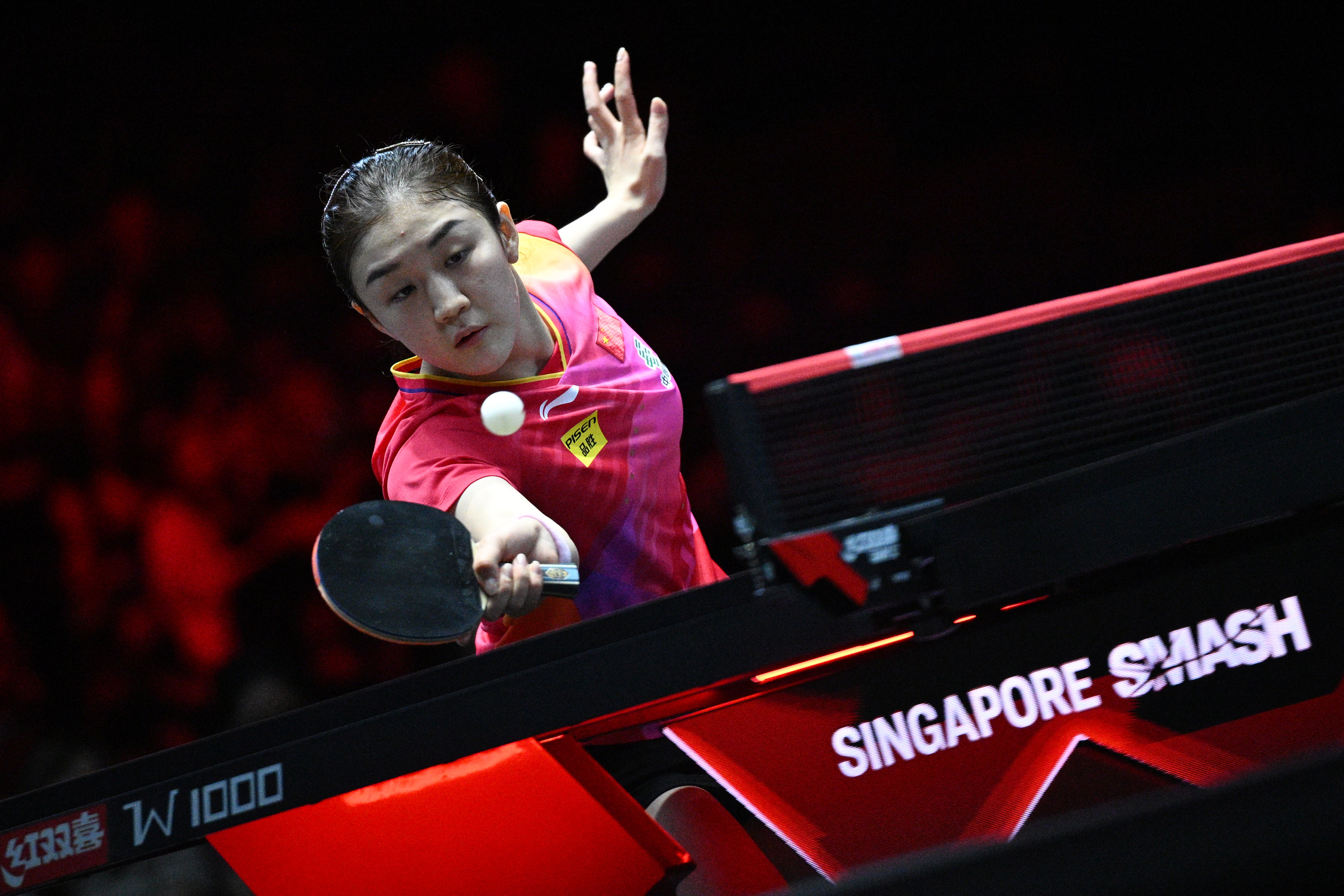 3月15日,中国选手陈梦在WTT新加坡大满贯女单四分之一决赛中。新华社发(邓智炜 摄)