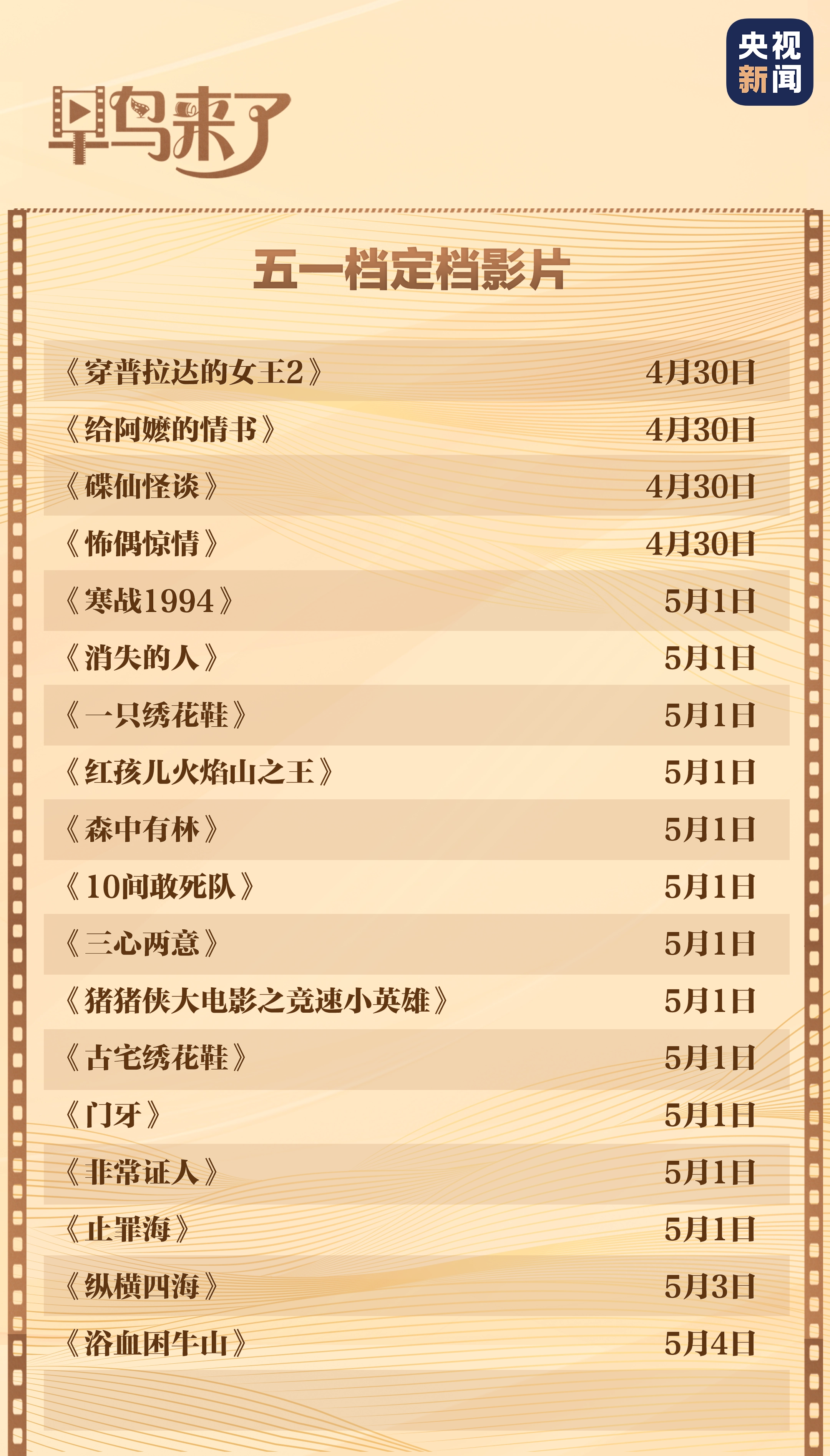此外,悬疑惊悚影片《非常证人》《一只绣花鞋》,家庭喜剧影片《给阿嬷的情书》等多部影片也将在五一档上映,为观众带来更多观影选择。
