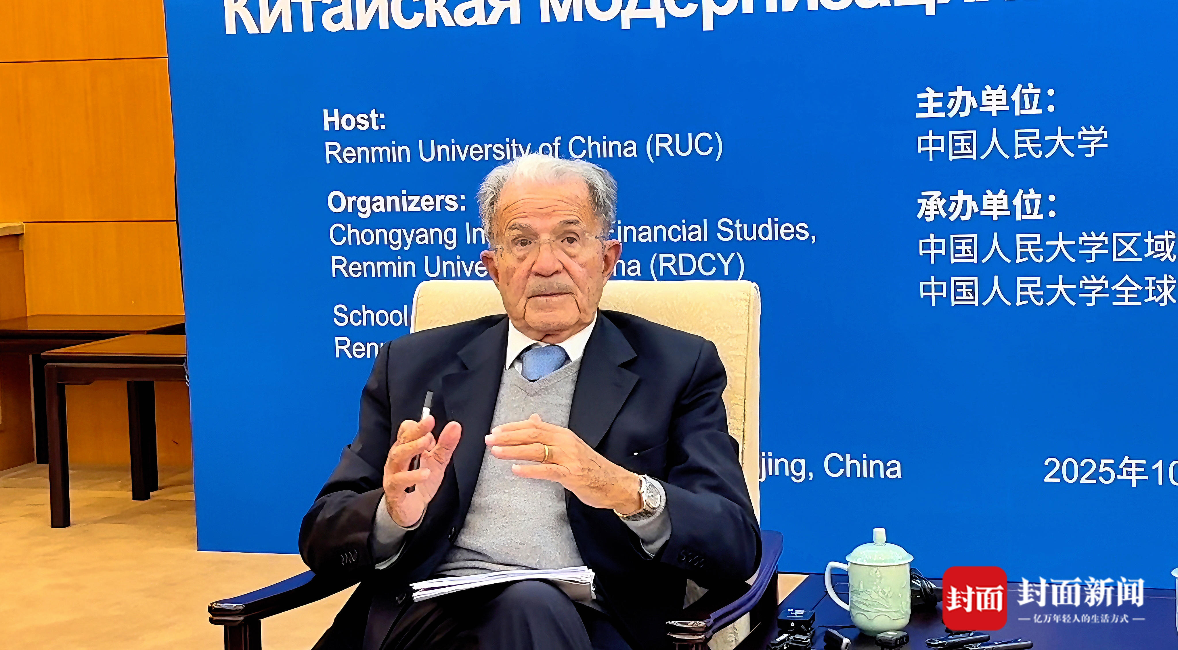 近日,由中国人民大学主办,重阳金融研究院、全球领导力学院承办的“明德战略对话(2025)”在北京举行。86岁的罗马诺·普罗迪接受封面新闻记者专访时表示,中欧需进一步加强交流与互动,深化经济领域的务实合作,巩固互利共赢的基础。同时,要扩大人文领域交流,为关系发展注入更多韧性。