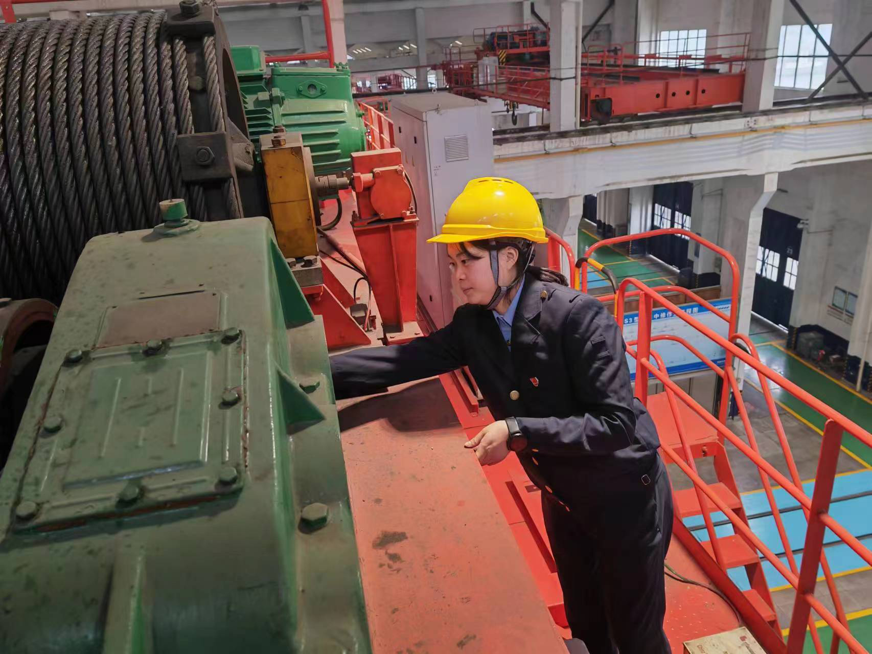 余佳深知,虽然自己是一名普通的天车工,但也是机车检修作业的重要一环。每天在登上天车控制室之前,她总会去检查钢丝绳是否完好、有无脱槽现象,检查吊钩是否完好、滑轮外观有无缺陷,检查操作控制器急停按钮是否复位……这些琐碎的工作细节,成就了她“零失误”的成绩。