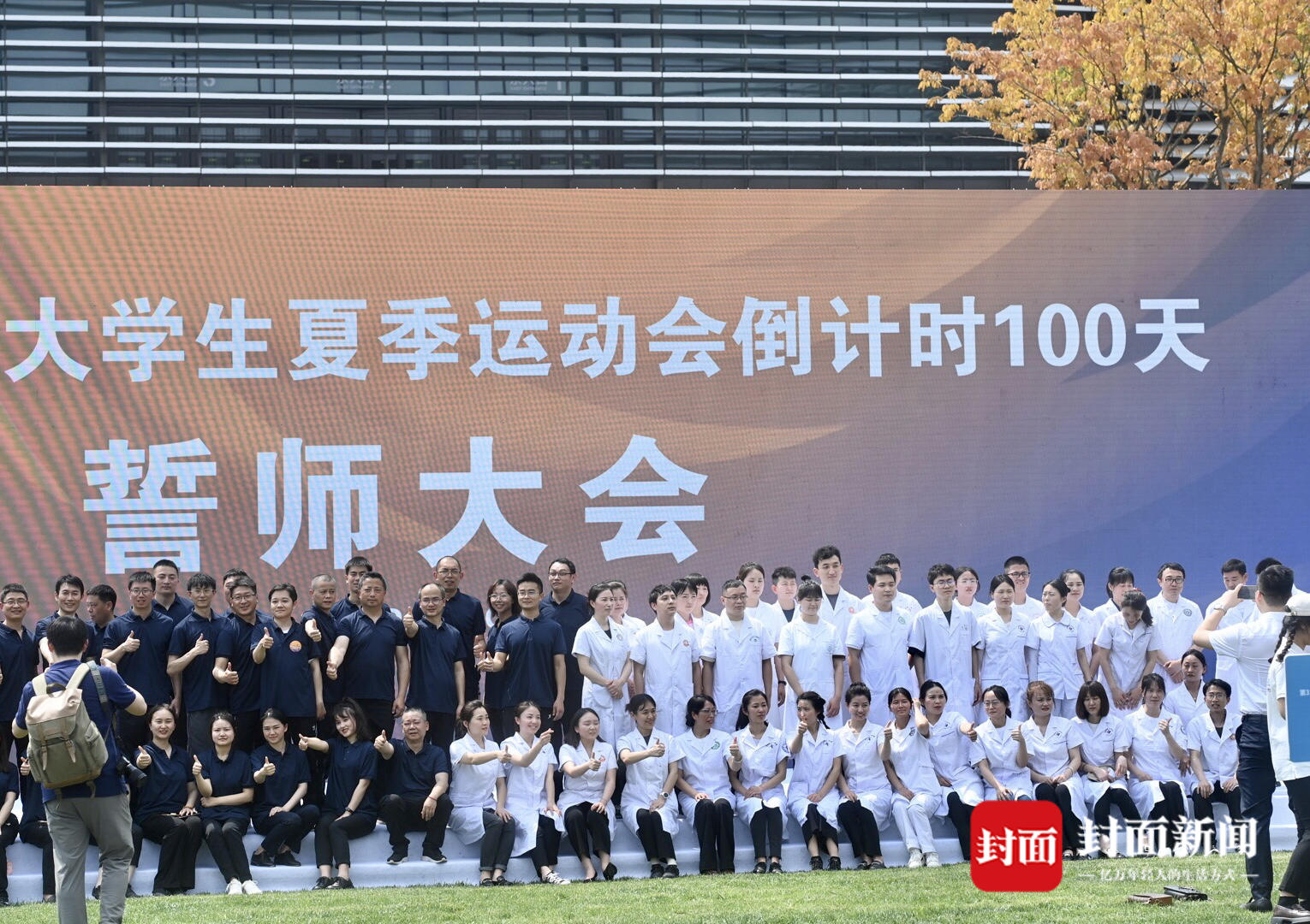 誓师大会现场,医护人员合影。