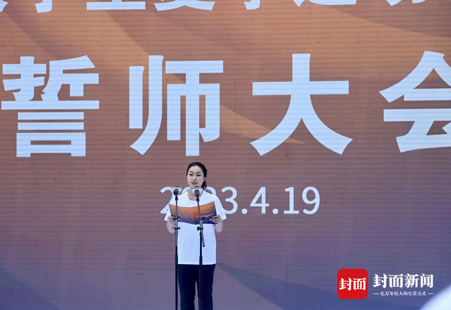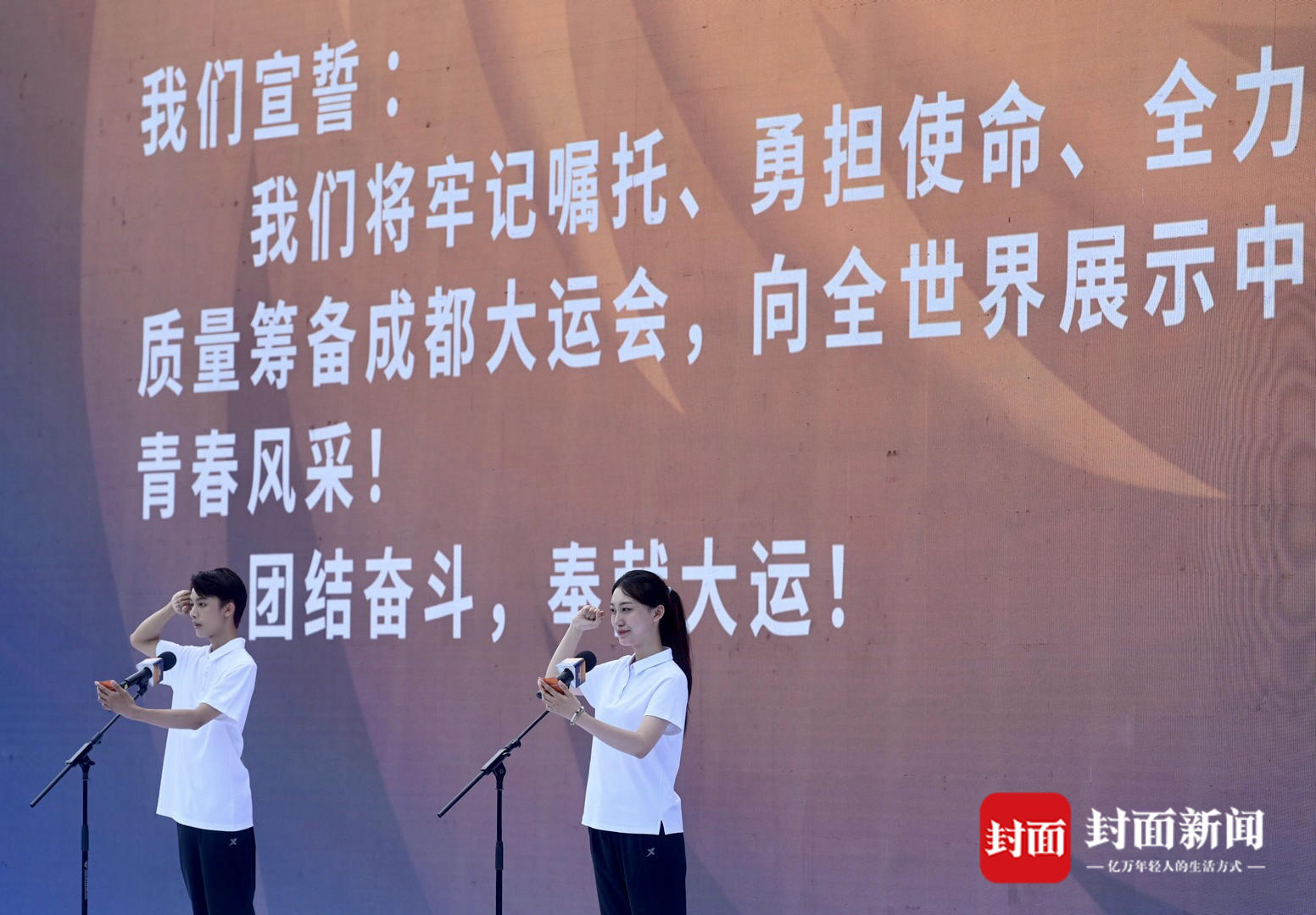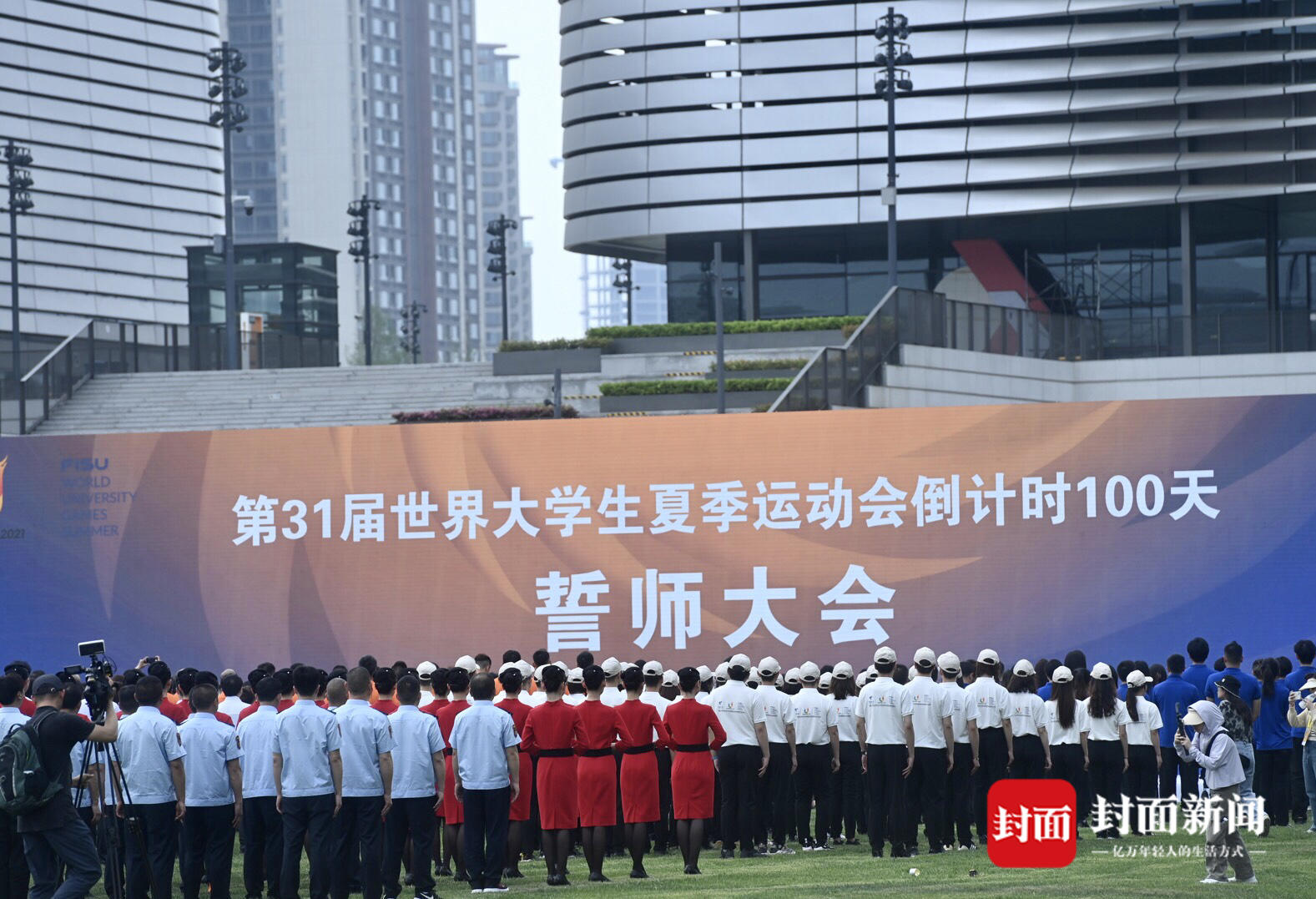 4月19日下午,成都东安湖体育公园“世界大运公园”草坪,第31届世界大学生夏季运动会倒计时100天誓师大会如期举行。赛会一线工作者、志愿者约500人参与。