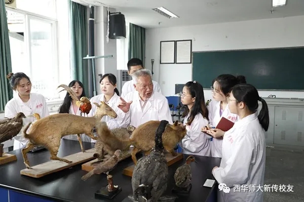 胡锦矗教授在指导研究生。(图据西华师范大学)