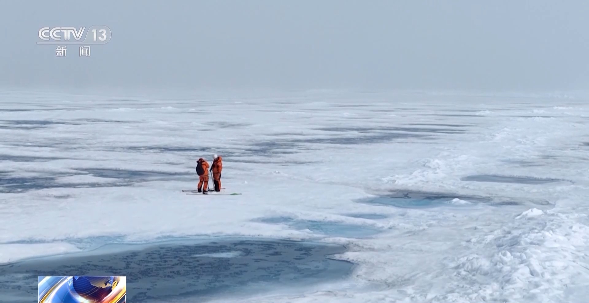 中国第13次北冰洋科学考察队大洋队队长 陈超:下雪时间不长,会形成一个明显的、周围能看出的痕迹,所以这个还是比较危险的,比较空,全是水。探冰属于整个冰站作业的第一步,因为只有把第一步走好,我们才能开展后续的各项作业,包括生物生态、布放浮标这些工作。