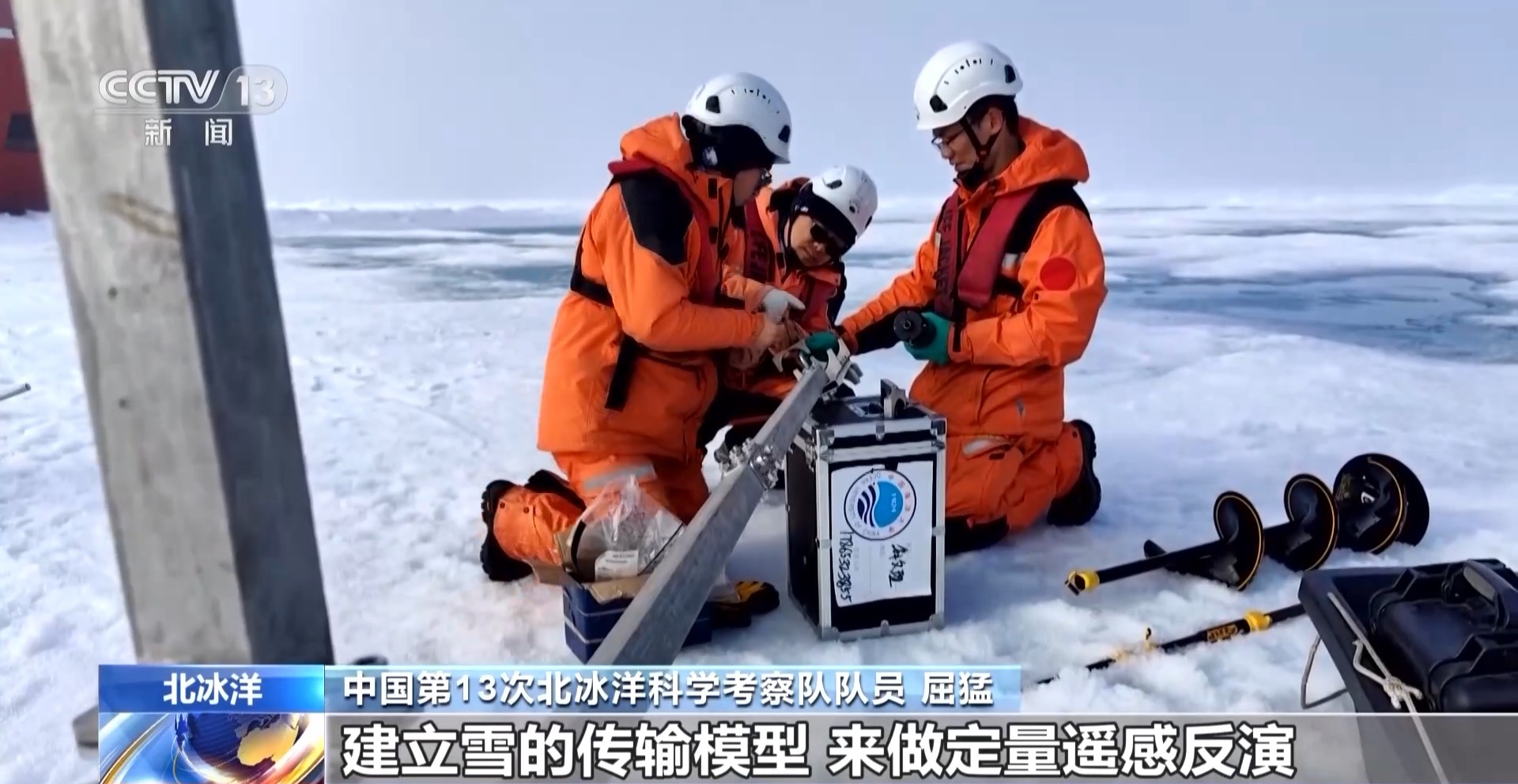 中国第13次北冰洋科学考察队队员 屈猛:我在测雪密度、含水量。卫星遥感需要一些雪的物理特性,建立雪的传输模型,来做定量遥感反演。