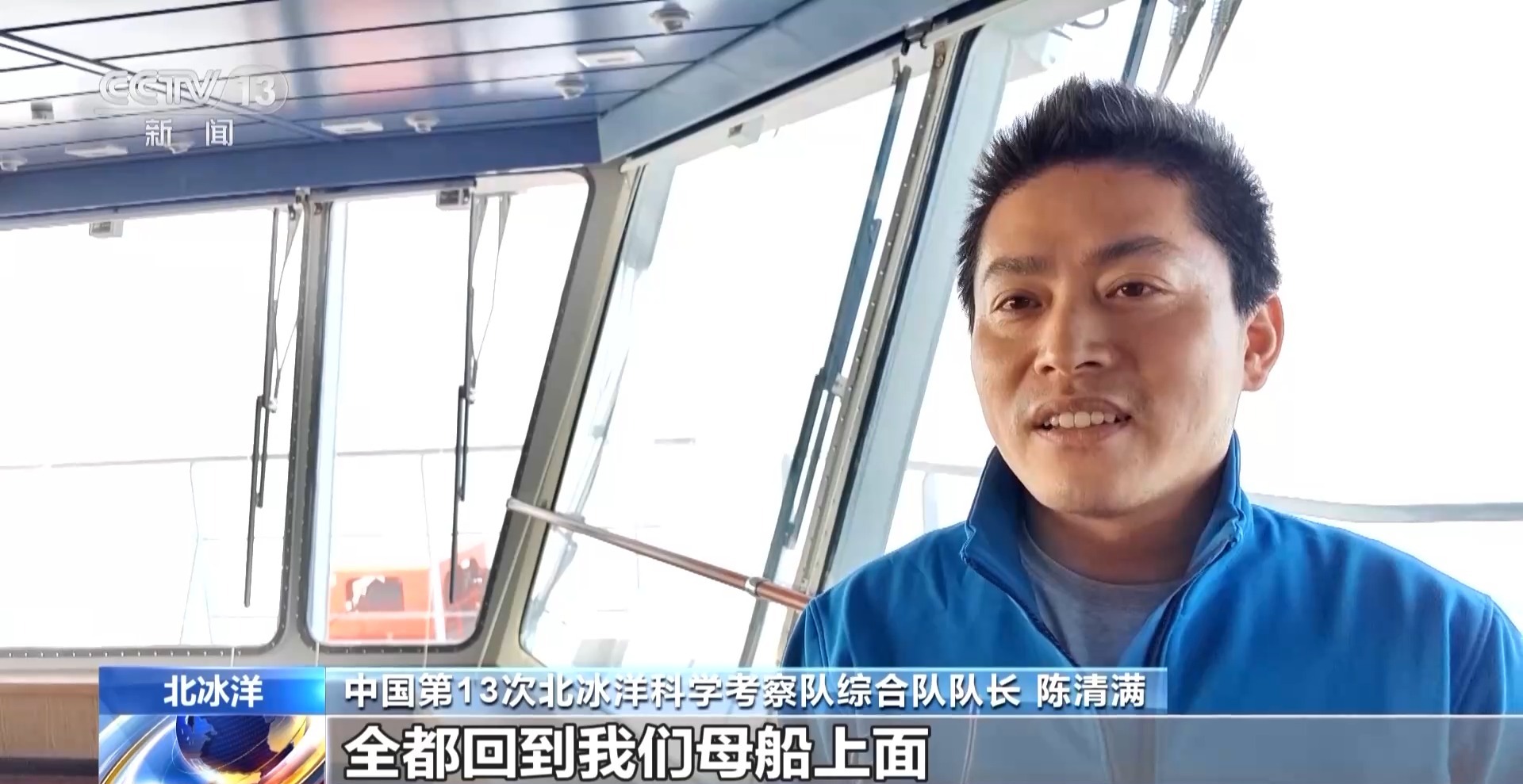 中国第13次北冰洋科学考察队综合队队长 陈清满:整个防熊队差不多有17个人左右,分成几班,不停倒班。我们选取了没有涉及相应冰面作业任务的队员,还有船上有很多年北极考察经验的船员。自从演习发出北极熊出现的警报之后,大概三分钟,冰面的所有人员全都回到母船上,演习效果还是不错的。