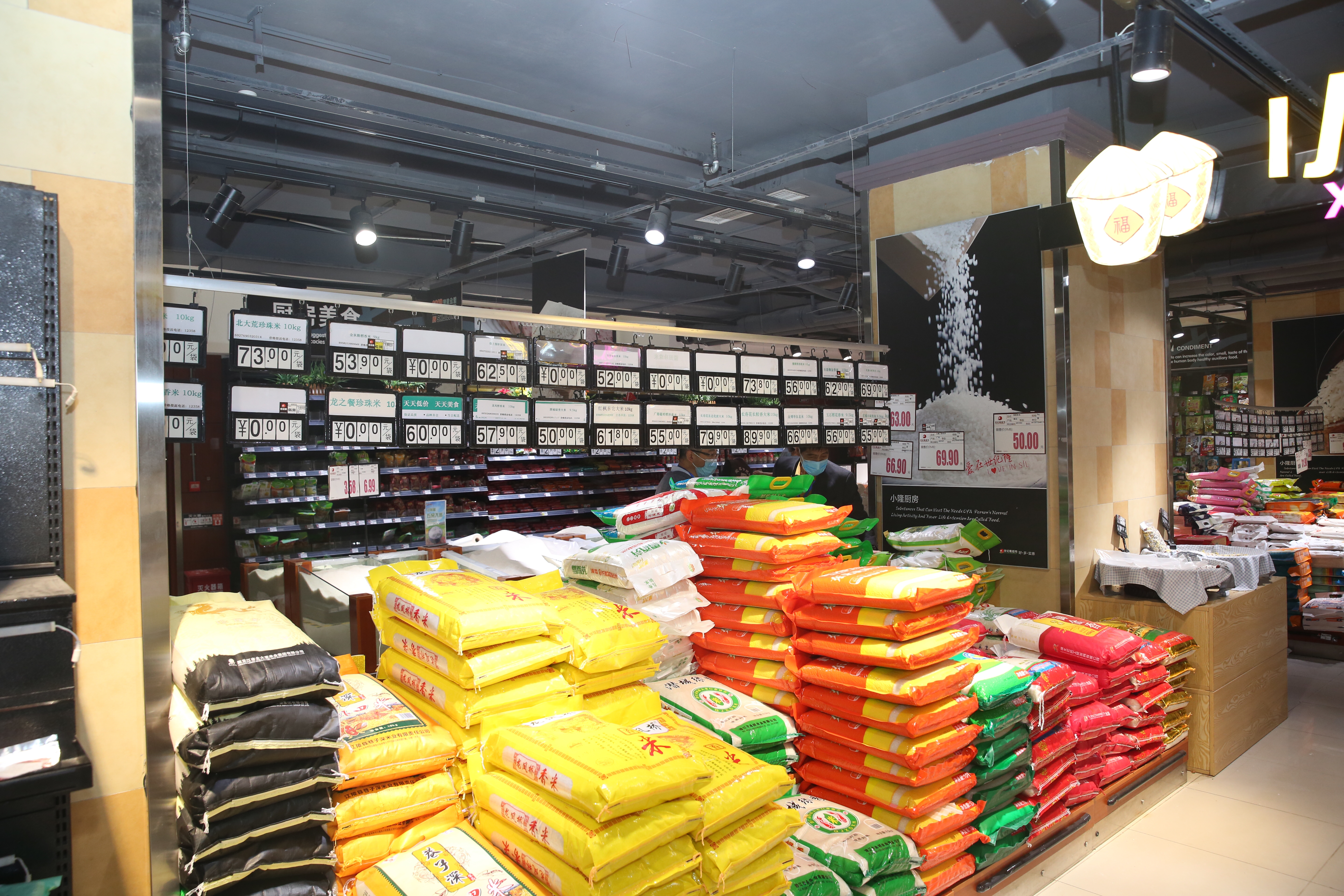 5月18日,邻水县世纪隆超市(东方店)内,大米、食用油等物资备货充足。 摄影 兰林前