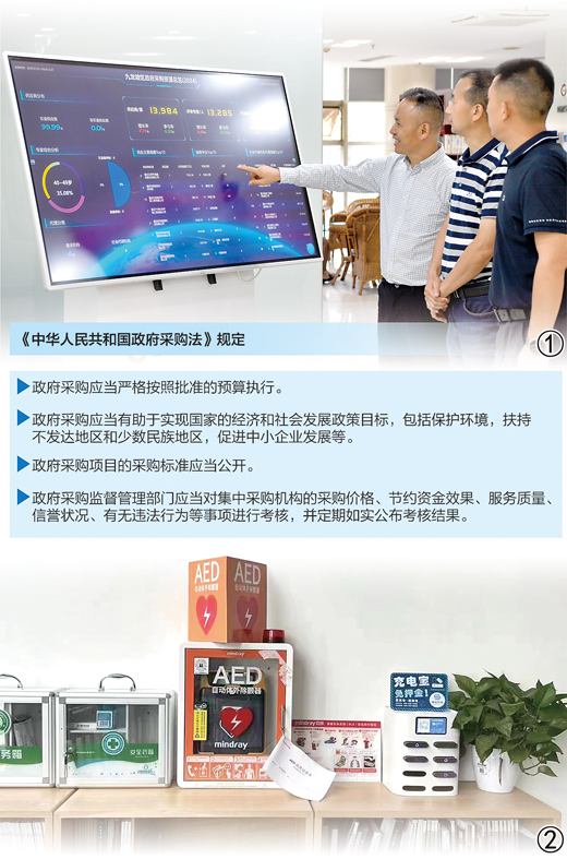 上图:重庆市九龙坡区财政局工作人员在区级政府采购数据驾驶舱前查看实时数据。 周邦静 摄下图:浙江省舟山市博物馆AED安放点。 刘建武 摄