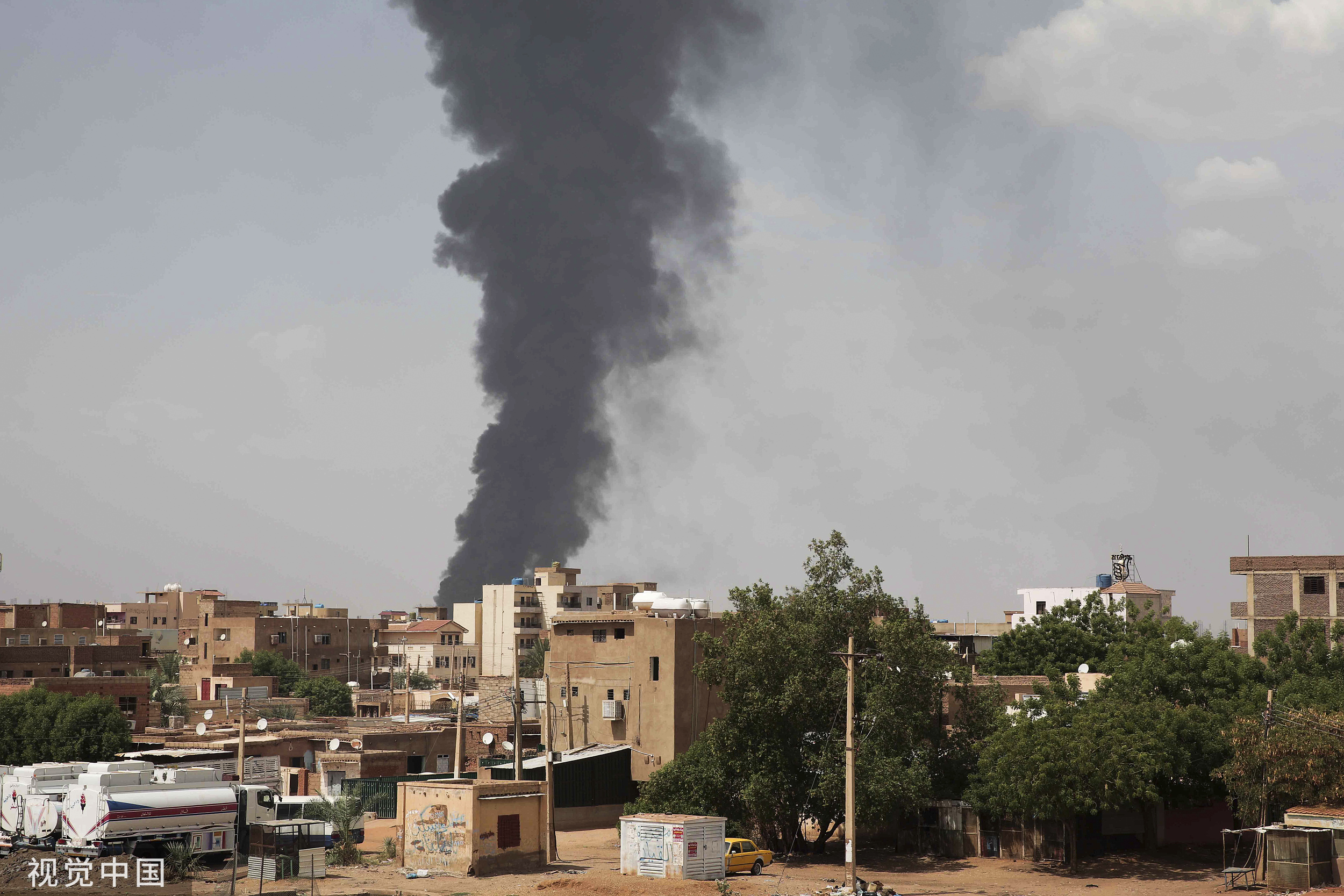 当地时间2023年6月8日,苏丹喀土穆上空浓烟滚滚,苏丹军队和准军事快速支援部队之间的战斗仍在继续。视觉中国 图