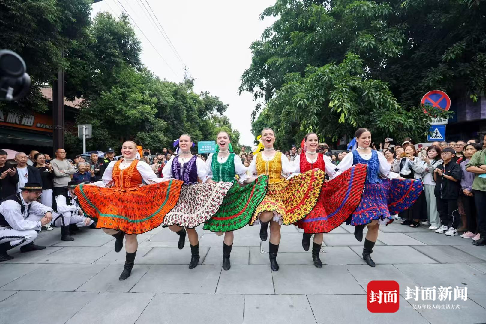 当天上午,在小南街主舞台上,中国戏曲舞蹈《翎戏芙蓉》以翎子为魂、芙蓉为韵,演绎巴蜀文化的灵动;斯洛伐克舞蹈的奔放与阿尔及利亚音乐的悠扬交相辉映,展现中外艺术对话的独特魅力;江西会馆内,德国、西班牙厨师与川菜大师同台呈现“舌尖上的非遗对话”;非遗巡游中,墨西哥韦拉克鲁斯民俗舞蹈、板凳龙、城厢过街连箫等12支队伍穿行古城街巷,绘就流动的世界非遗长卷;国际非遗市集上,泰国木雕、越南丝绸、土耳其马赛克灯等8个国际非遗代表性项目与藏羌刺绣、绵竹年画、城厢木雕等29项国内技艺比邻而展,搭建非遗“活态传承”生动图景。
