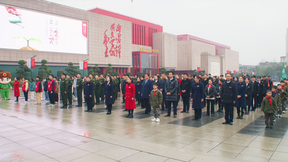 湖南雷锋纪念馆举行向雷锋同志塑像敬献花篮仪式。(长沙市望城区委宣传部供图)