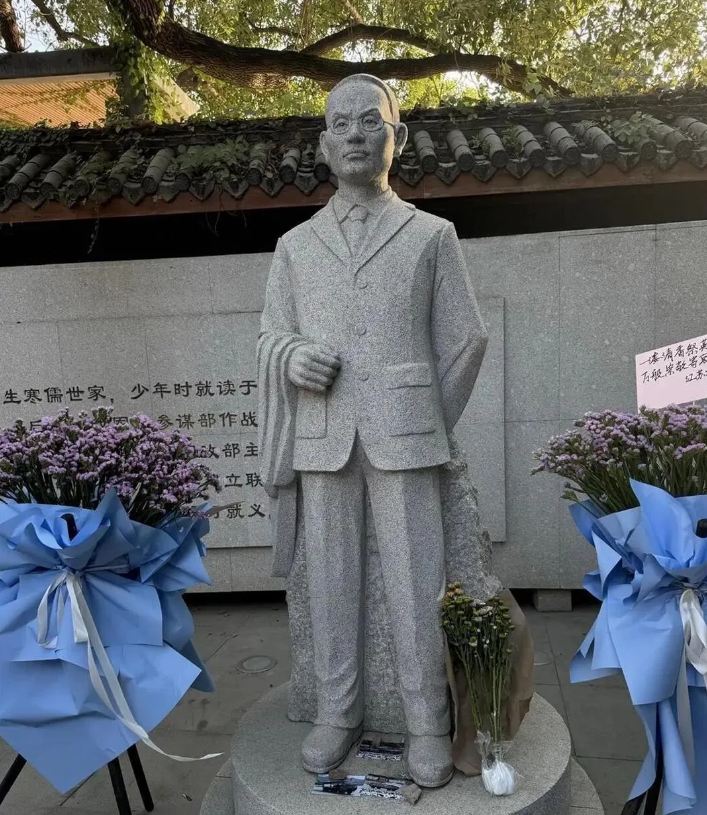 △在北京西山国家森林公园内的无名英雄纪念广场,正中央矗立着以吴石、朱枫、陈宝仓和聂曦为原型的雕像。