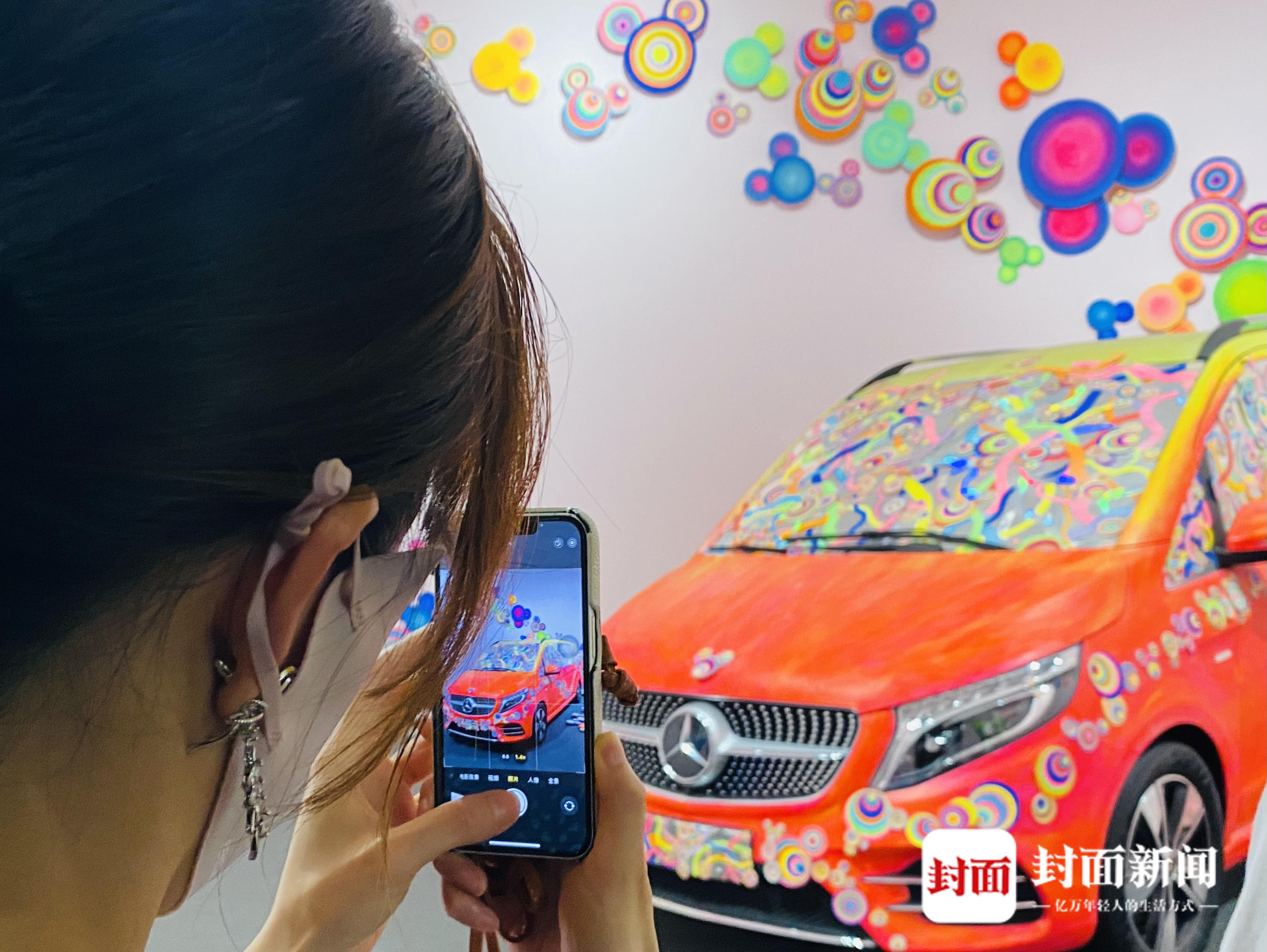 在中国艺术家的特约创作中,“90后”陈粉丸的《想象力散播计划》是一个独特存在。作为依托纸艺表达想象力的艺术家,她借用纸雕将奔驰V级MPV与米奇元素相融合。她用丙烯颜料将车身手绘为粉红色,并以车身为中心,将米奇的构件从驾驶窗蔓延至车体甚至展厅的墙体。营造出一个跨越空间又融于空间的感官效果,也引导着观众散发想象力,以车为起点,突破路的界限甚至思想的边界。