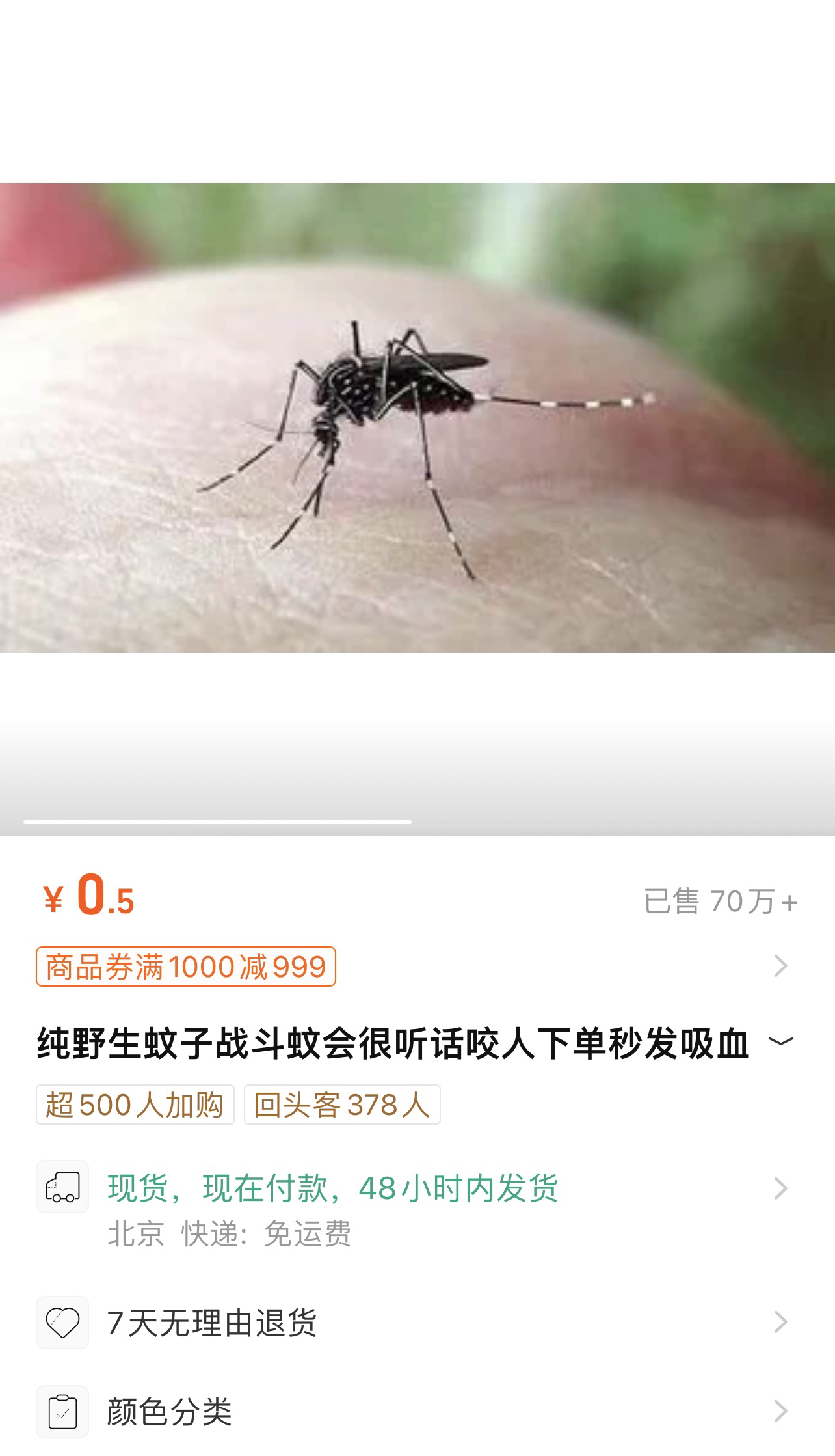 虚拟产品“野生蚊子”销售量超70万。