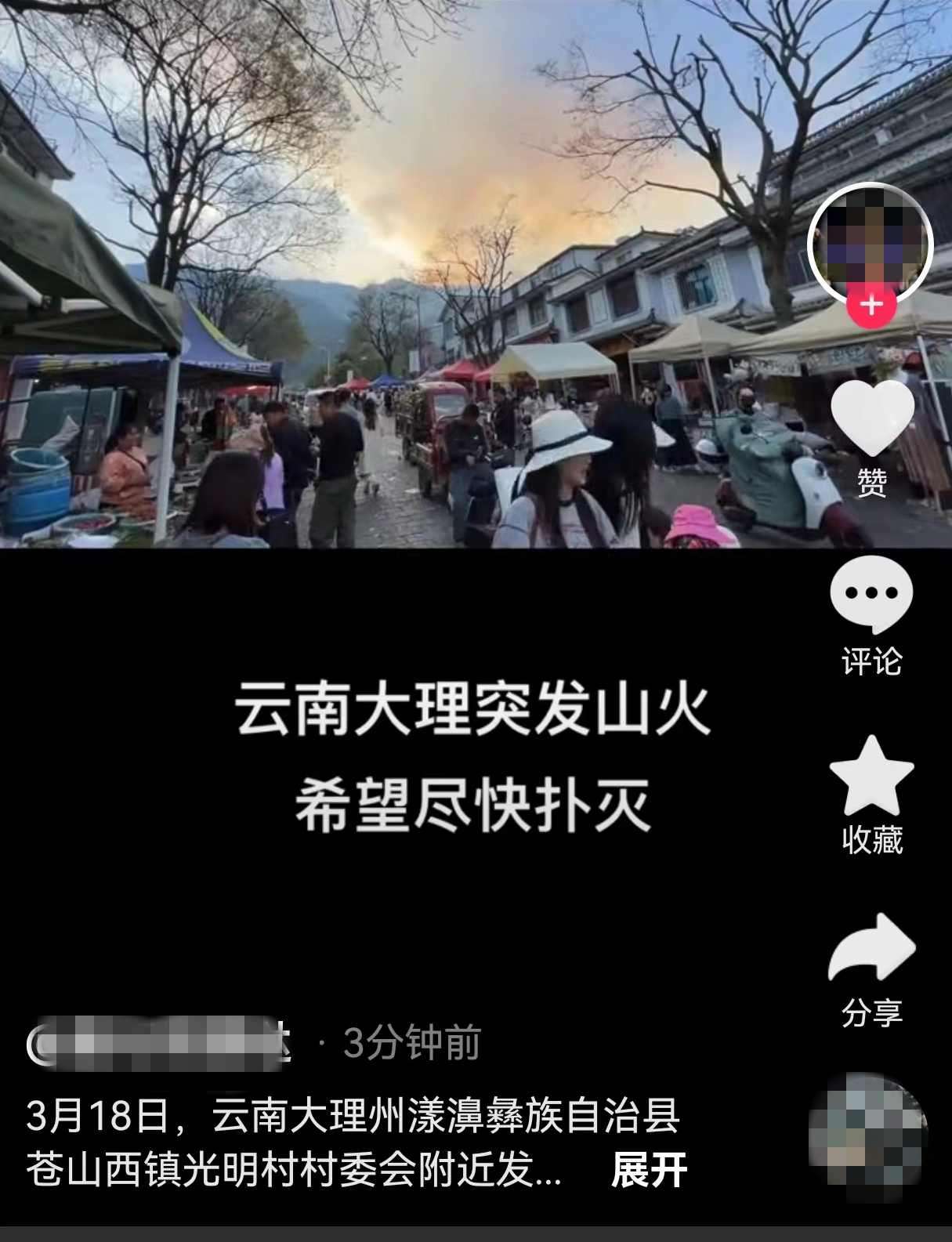据光明村村民赵大姐介绍,火情发生于下午3点左右,她当时正准备从大理下关回家。她是从朋友圈看到了发生山火的消息,马上给灭火现场送去了水桶。截至18日20时,山火仍未扑灭,赵大姐说,现场有几百人在忙着灭火和搞后勤,“我送了水桶,就留下来帮他们做饭,然后还看哪儿需要帮忙嘛。”