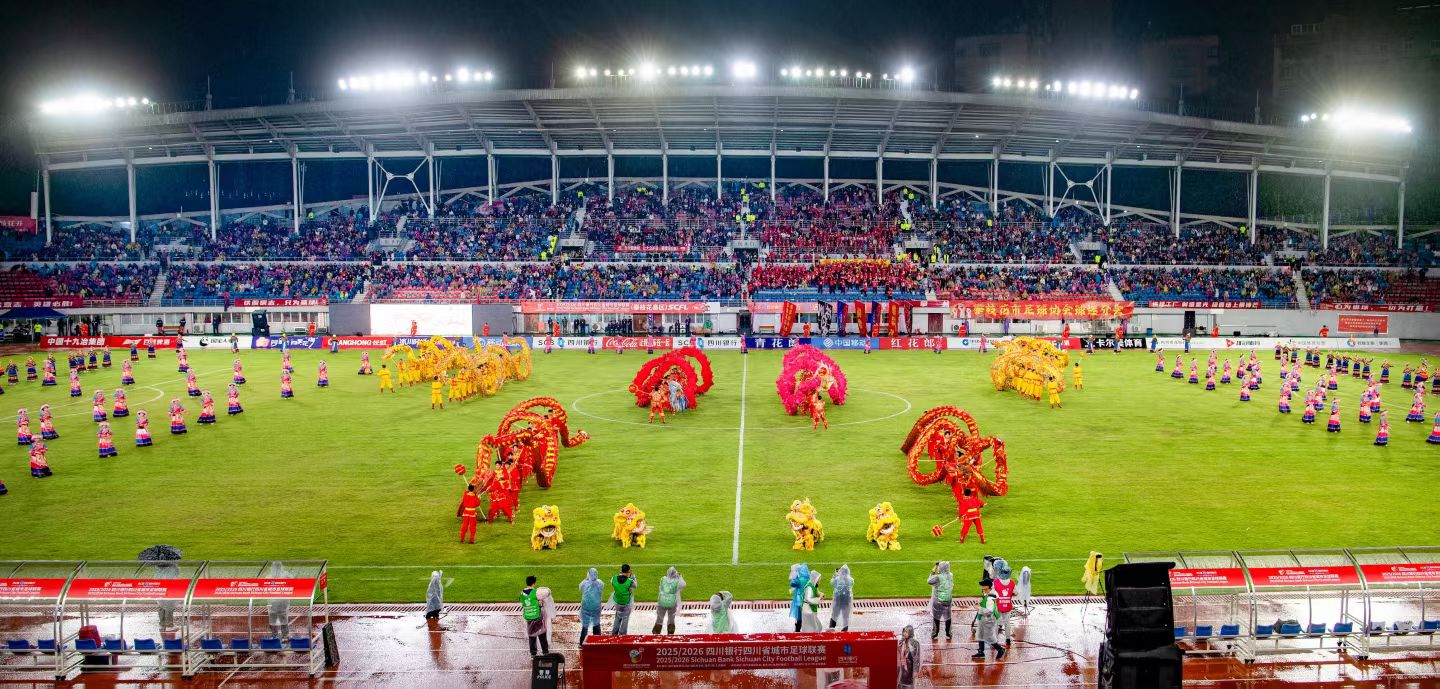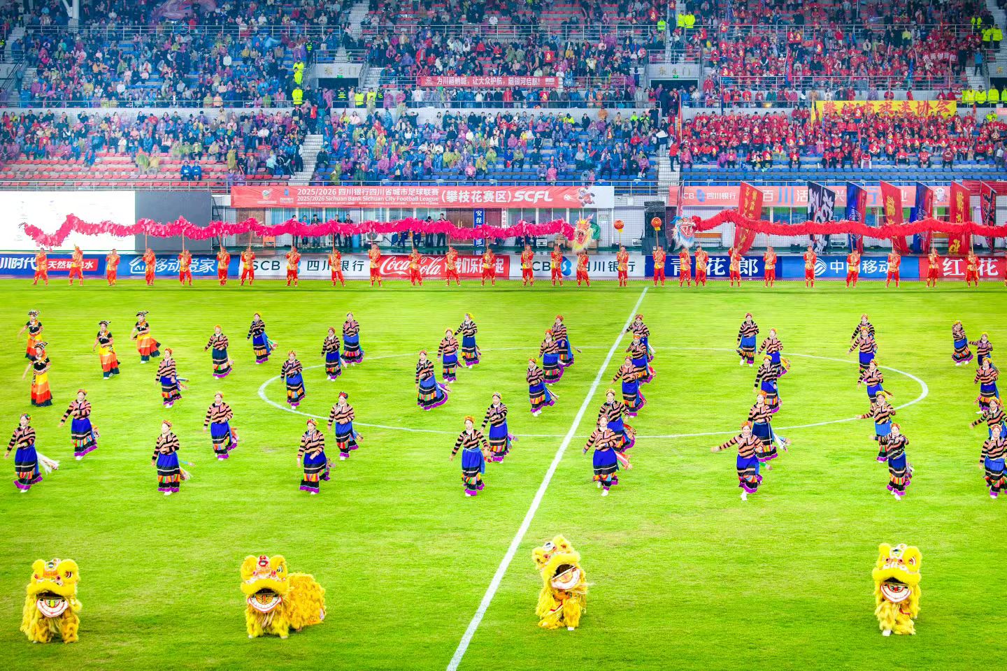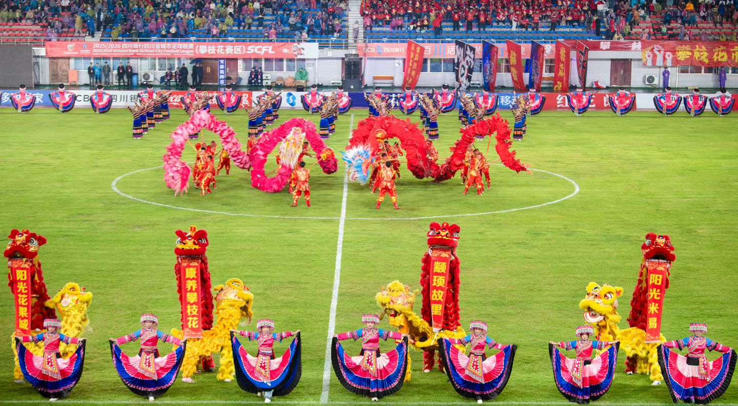 11月2日晚,“川超”川西赛区攀枝花攀钢钢铁勇士队主场迎战乐山味道非常队,两队雨中激战,最终1:1握手言和。现场,攀枝花市米易县精心策划的千人规模非遗展演“点燃”现场,刮起“最炫民族风”。