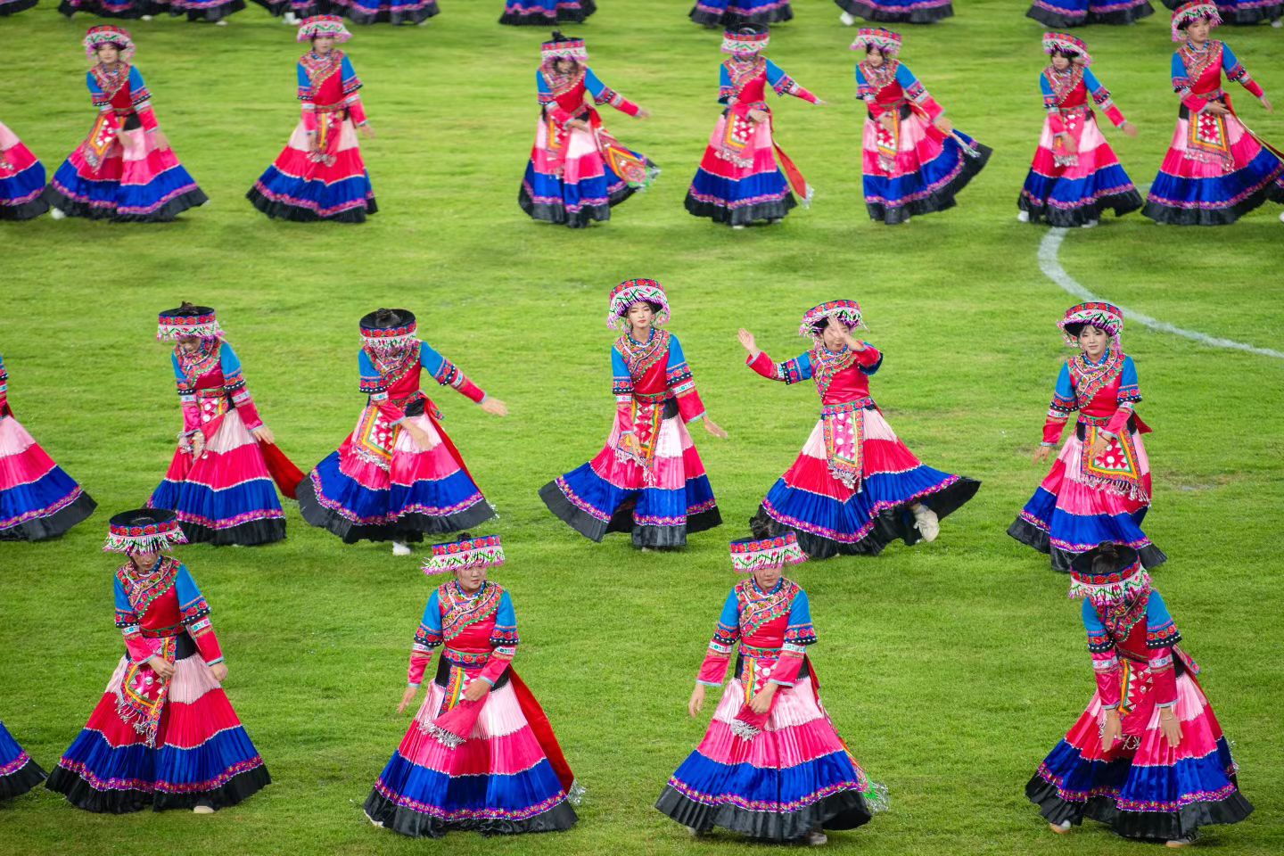 比赛前,融合展示米易县新山傈僳族刺绣技艺、新山傈僳族织布技艺、观音龙灯舞等20项非遗的大型非遗民俗舞蹈表演《阳光下的我们》震撼登场,融合展现北纬26度的米易阳光般的热情。