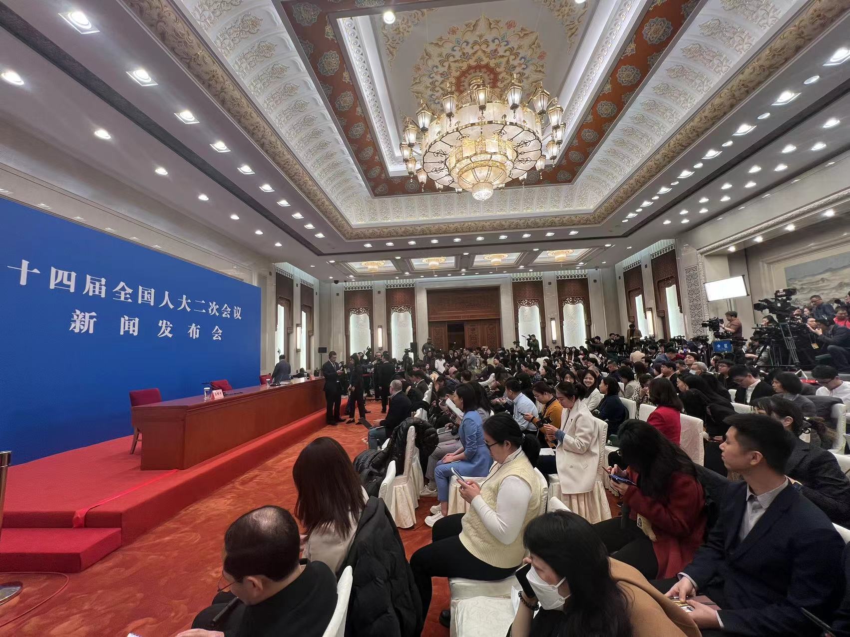 在本场发布会开始前一个小时,可容纳数百人的发布厅已座无虚席,工作人员不得不引导部分记者离开发布厅,到人民大会堂北大厅旁听新闻发布会。