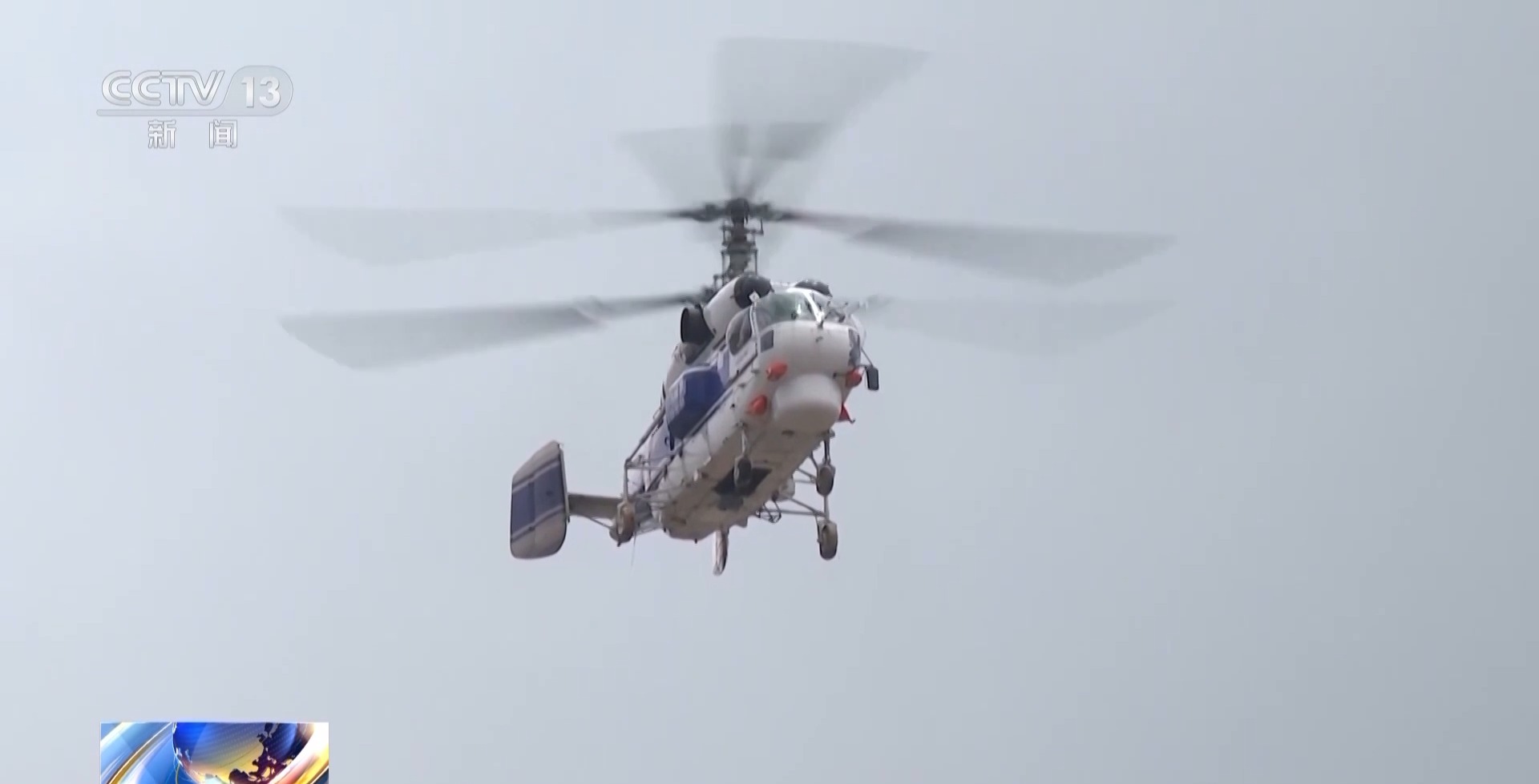 为确保受灾群众的安全,救援直升机持续运转,将救援人员和物资送至受灾地区。