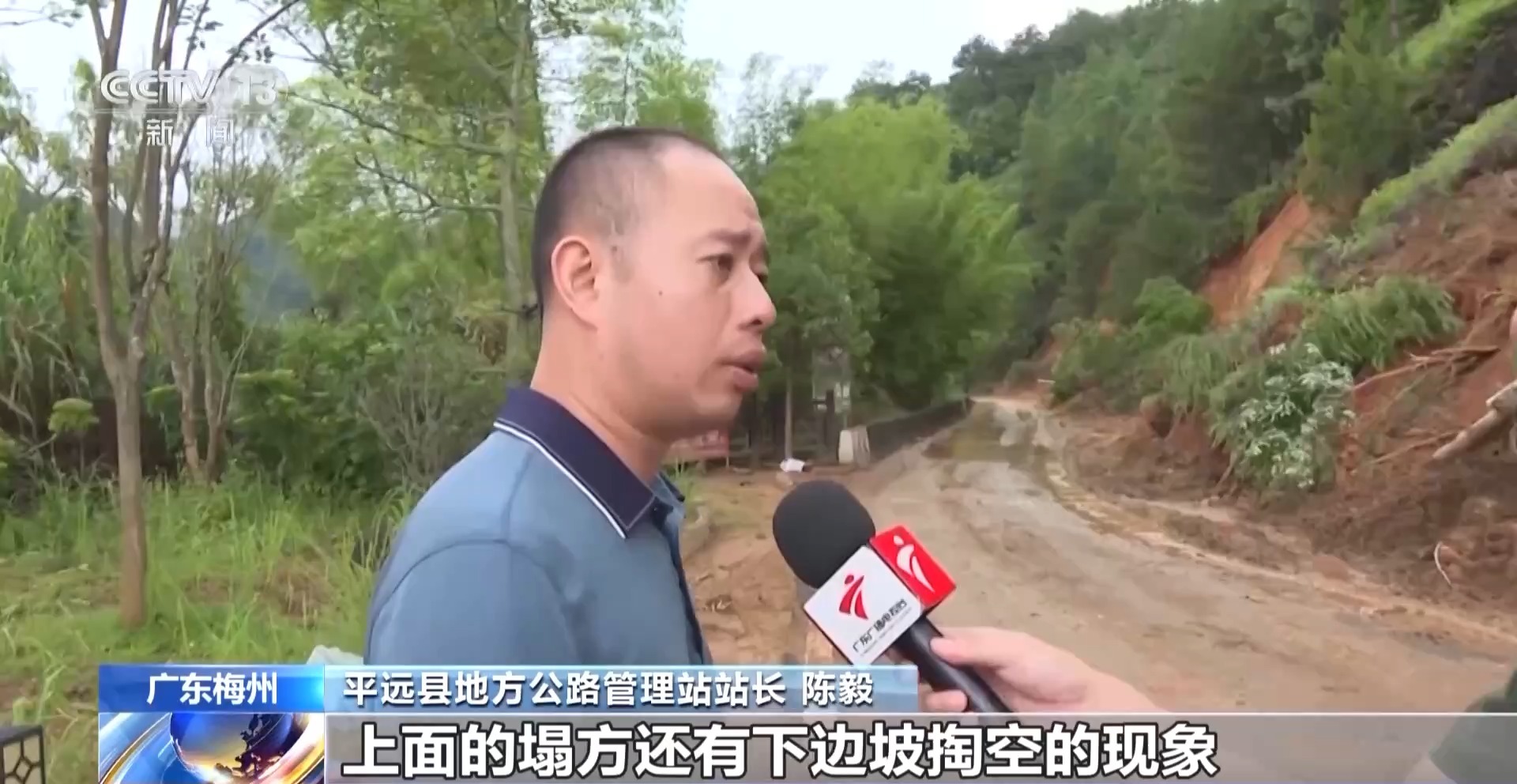 梅州平远县地方公路管理站站长 陈毅:现在我们调了大约20台抢通的铲车和挖机过来,但是因为作业面路比较窄,而且上面的塌方还有下边坡掏空的现象比较严重,我们不好操作这些机械。