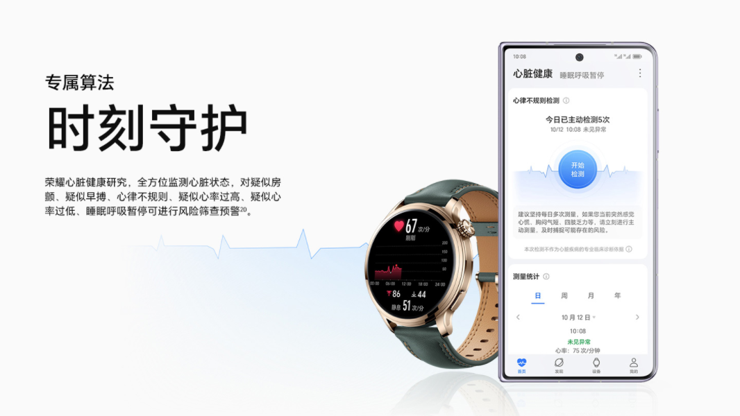 大屏设计、一表双待、10天超长续航,支持血氧饱和度、压力、睡眠等数据全面监测,荣耀手表4还采用自研一体化微透镜阵列设计,提升了光学性能,让心率测量更加准确可靠,助力你的2024健康运动管理!