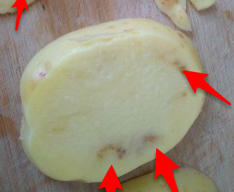 有些土豆内部也会有褐色条纹,也是“内生褐变”。