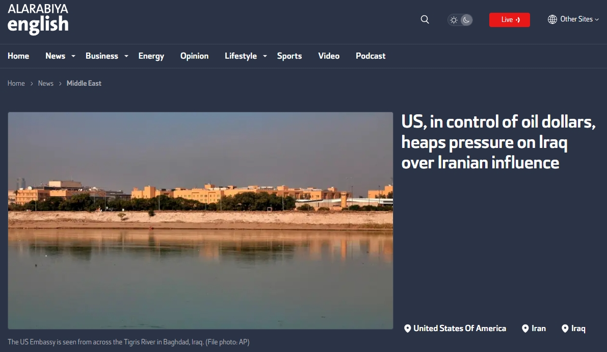 据多家媒体日前报道,当伊拉克政府要求美军在2020年撤离伊拉克时,美国就曾威胁要切断伊拉克获得石油收入的渠道,当时伊方被迫作出了让步。如今,美国又因为伊朗的因素威胁制裁伊拉克,其中就包括“通过纽约联邦储备银行获得的重要石油收入”。