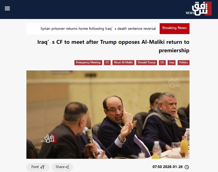 美国总统特朗普当地时间1月27日在社交媒体发文称,如果伊拉克前总理努里·马利基再度当选总理,美国将不再“援助”伊拉克。