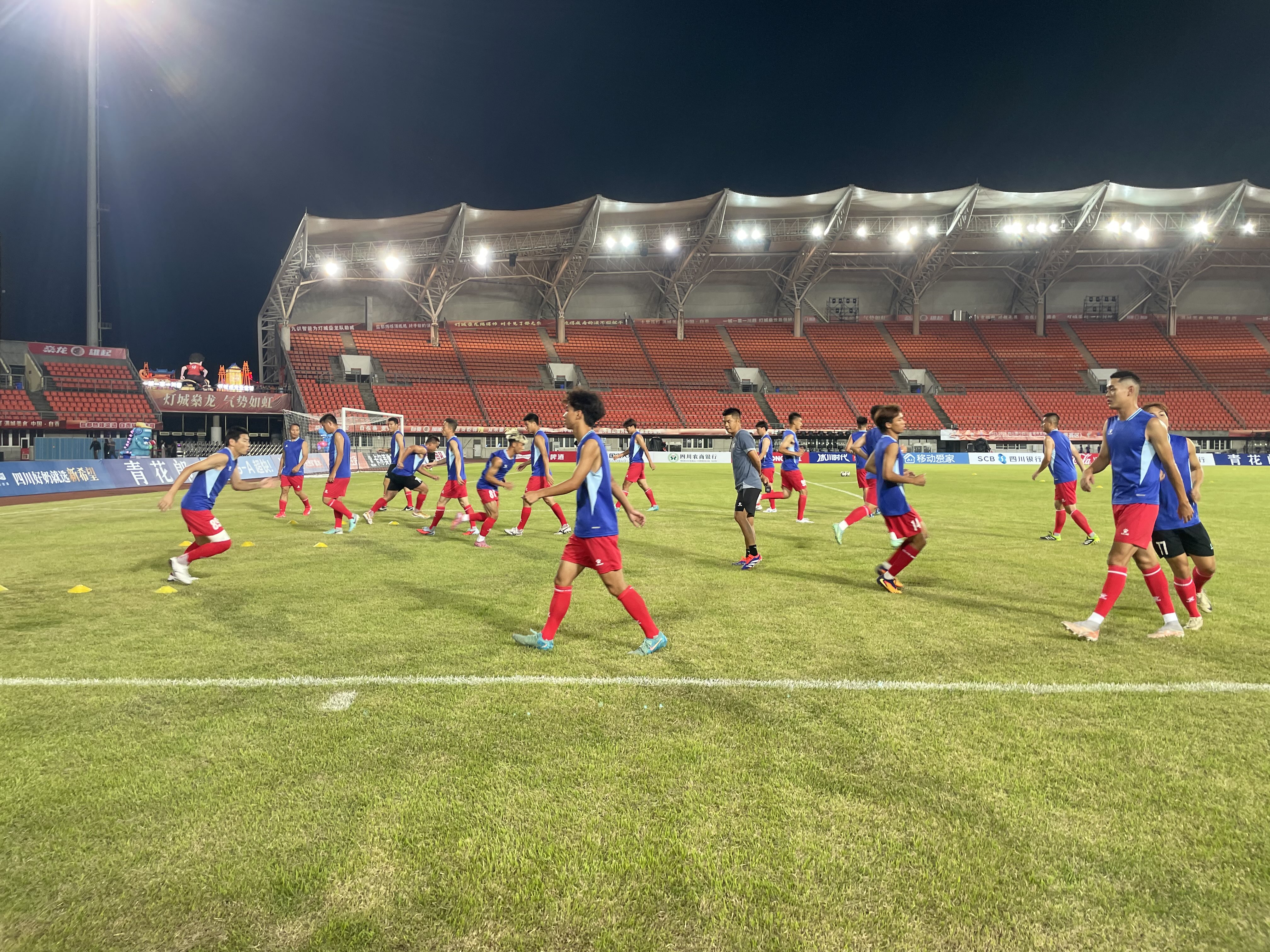 当天的赛场上,内江重龍酒队和自贡灯城燊龙队分别在场上进行了热身。内江队一位头染黄发的球员张何燃被网友亲昵地称为“内江内马尔”,特别受到关注。