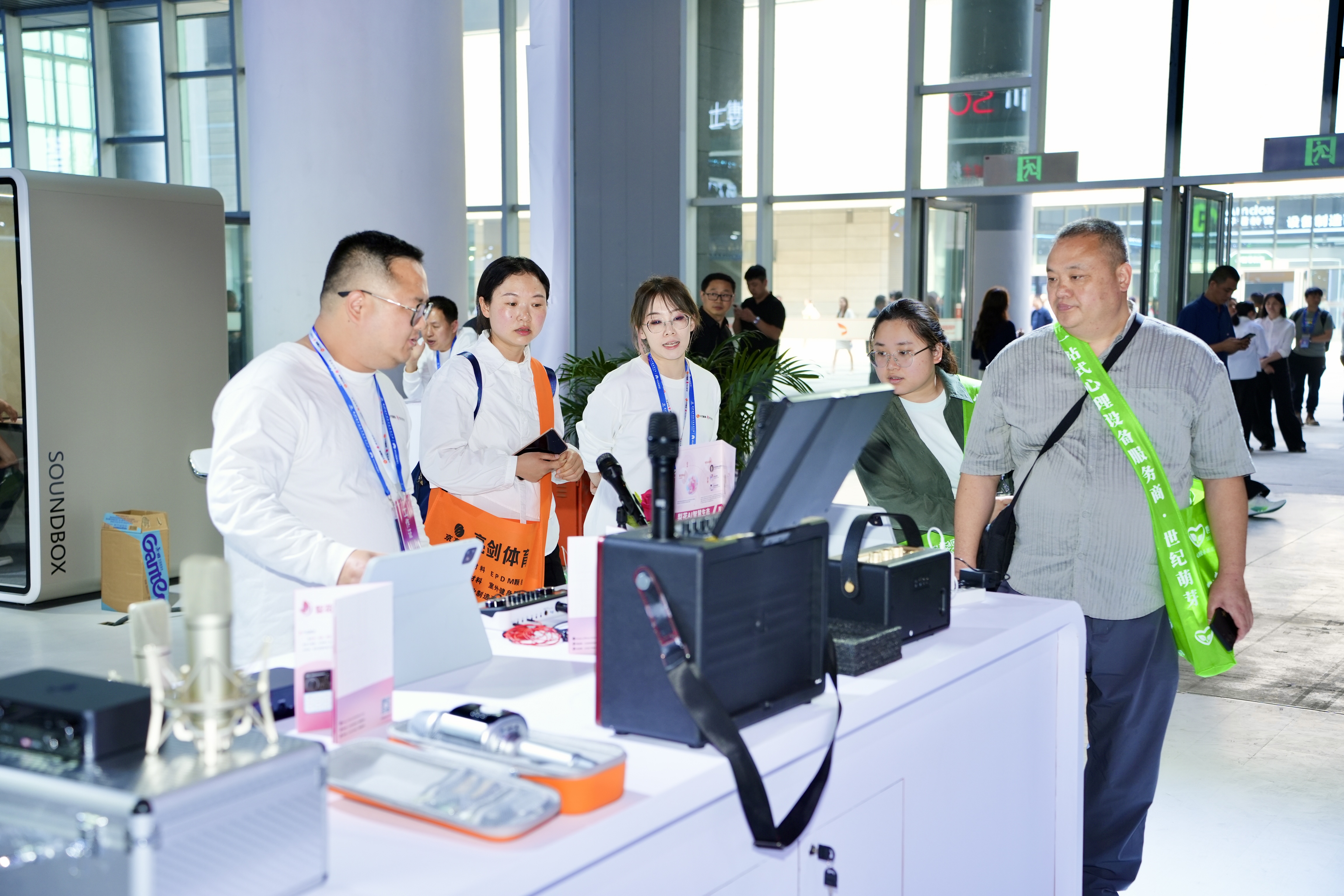 “1”是一款中枢级学习终端,梨花AI声学学习机;“2”是两大专项场景套装,朗诵与声乐K歌;“3”是三类专业级创作设备,分别对应声音创作的不同环节。一位来自成都本地的观众在试用后对现场工作人员表示,这些设备让声音作品从专业录音棚走到了普通人的书桌。