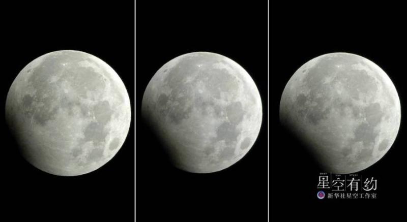 这是2010年1月1日凌晨在北京拍摄的月偏食从开始到食甚(从左至右)的拼版照片。新华社记者公磊 摄