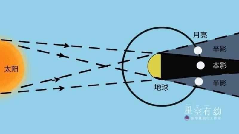 中国天文学会会员、天文科普专家修立鹏介绍,月食是当太阳、地球、月球三者恰好或几乎在同一条直线上时发生的一种天文现象。由于地球在太阳和月球之间,在太阳光照射下,地球的影子会分为两部分,一部分是太阳光完全被地球挡住的区域,称为“本影”;还有一部分是太阳光一部分被地球遮住,还会有一部分可以照射进来的区域,称为“半影”。当月球进入地球本影时,会发生月偏食或月全食;如果只进入地球半影,就会发生半影月食。不过月偏食或月全食时,月球也会经过地球半影区域,所以也会经历半影月食的阶段。