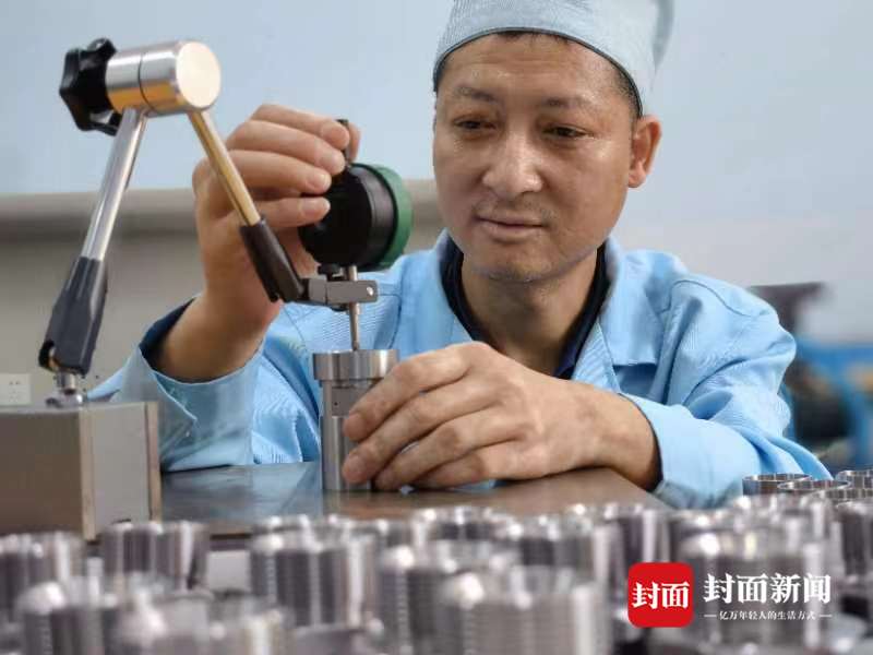 四川烽火伺服工作人员冯徳剑告诉封面新闻记者:“在长征七号遥七运载火箭上,快卸充气嘴虽然最大直径仅有2.4厘米左右,小身材却有着大作用,其质量一旦出现偏差,就可能会导致发射任务失败,这对产品的装配提出了极高的要求。”