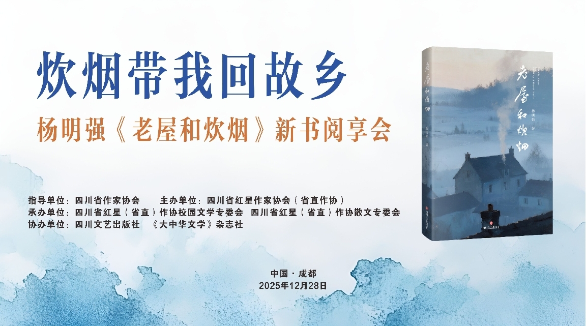 2025年12月28日上午,由四川省红星作家协会(省直作协)、四川文艺出版社主办,省直作协校园文学专委会、散文专委会承办的散文集《老屋和炊烟》新书阅享会,在四川省招生考试指导中心举行。来自文学界、出版界、新闻界的多位嘉宾出席活动,共同探讨这部兼具文学性、思想性与影像美学特质的散文集。