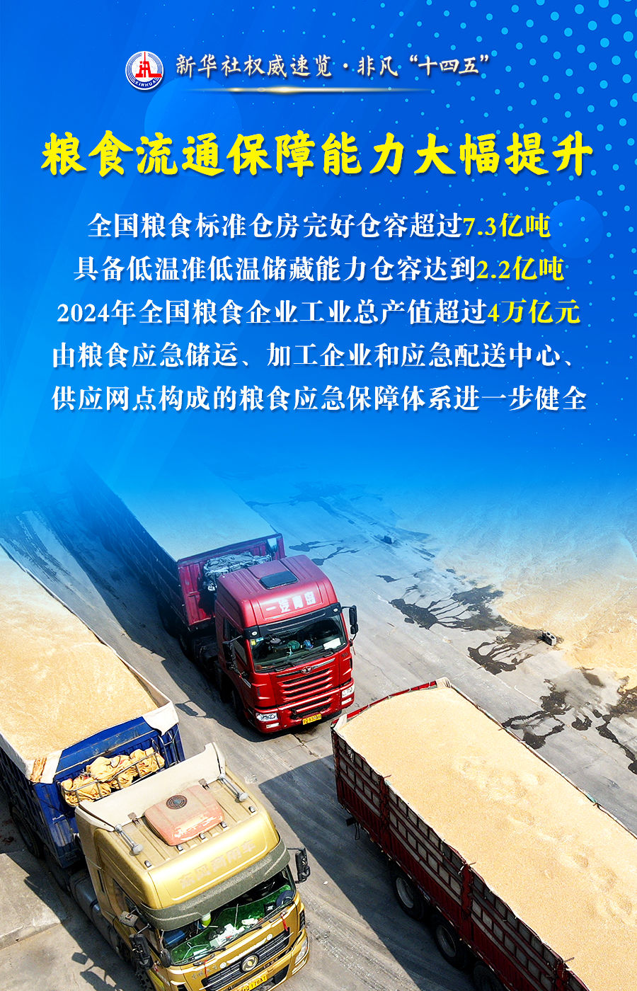 悠悠万事,吃饭为大。“十四五”时期,各地区各有关部门积极践行新粮食安全观,大力实施国家粮食安全战略,扎实推进粮食产购储加销协同保障,粮食流通改革发展各项任务进展符合预期,国家粮食安全得到有效保障,为经济社会高质量发展提供了有力支撑。跟随海报,一起了解。