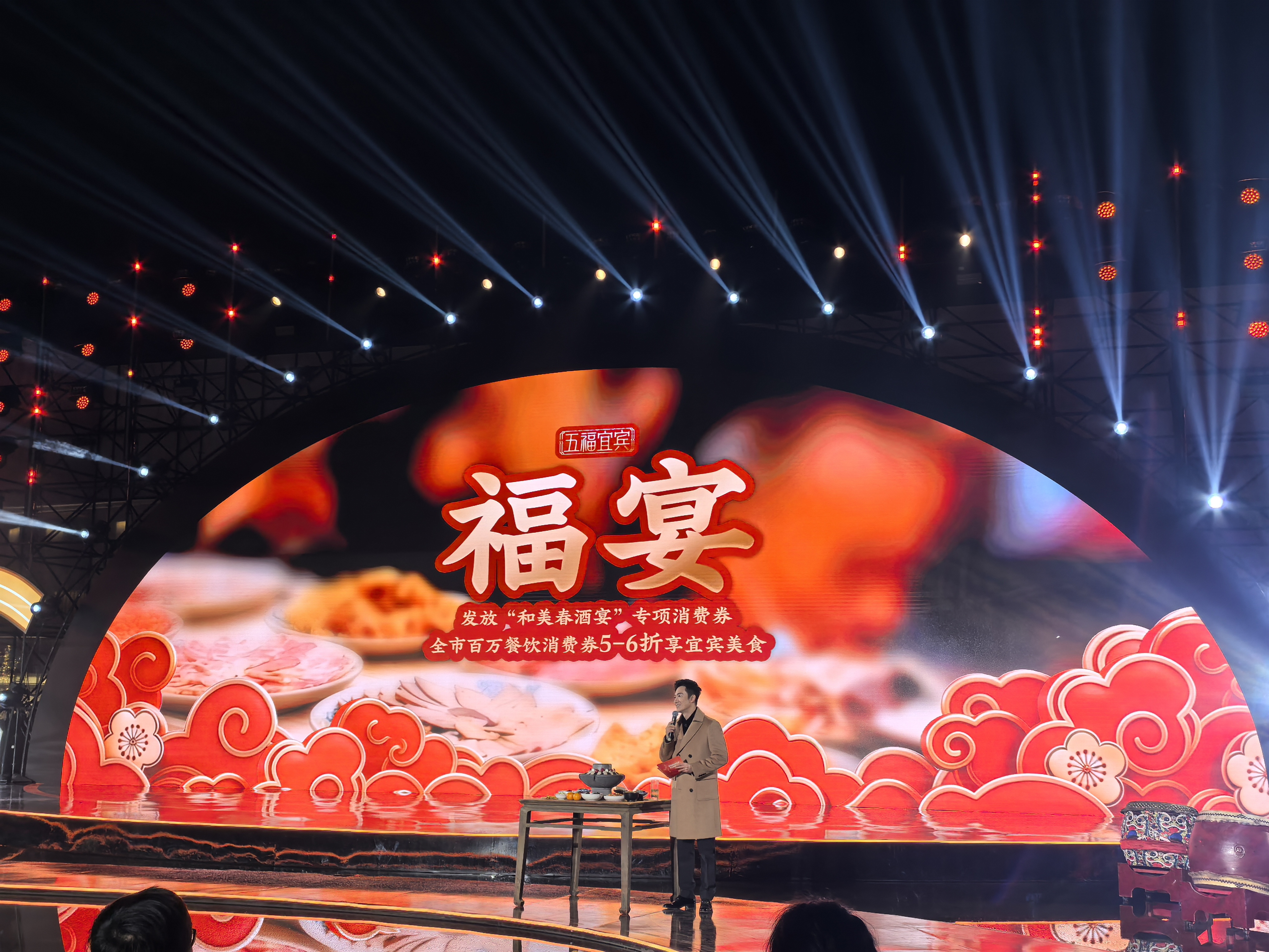 “福宴”是指发放“福宴”专项消费券,在五粮液501古窖池中国白酒文化圣地“和美春酒宴”现场核销;各县(区)在春节期间联动发放5—6折餐饮消费券共计100万元。