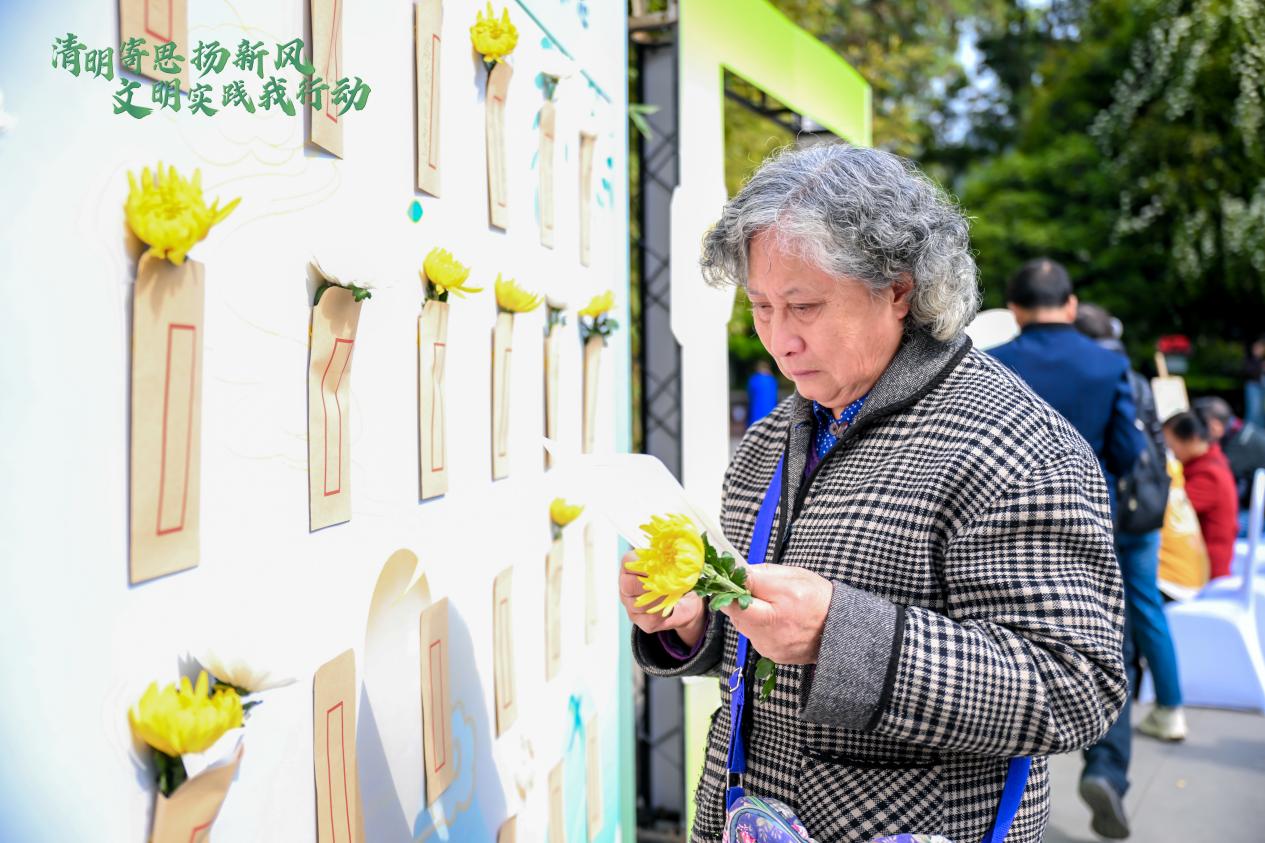 不放鞭炮,不烧纸钱,用文明、绿色的方式表达思念。活动现场利用传单、展板等方式倡导文明祭祀,市民纷纷响应,表示祭扫不在于形式,而在于一份发自内心的真切情感,一束鲜花、一张信纸的表达恰到好处,不必给环境增添负担,更不要留下消防安全隐患。