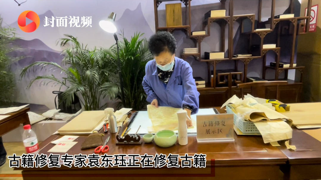 这是由四川省图书馆(四川省古籍保护中心)、成都杜甫草堂博物馆、四川大学图书馆、成都中医药大学图书馆主办的“妙手书医——古籍修复技艺展”现场。