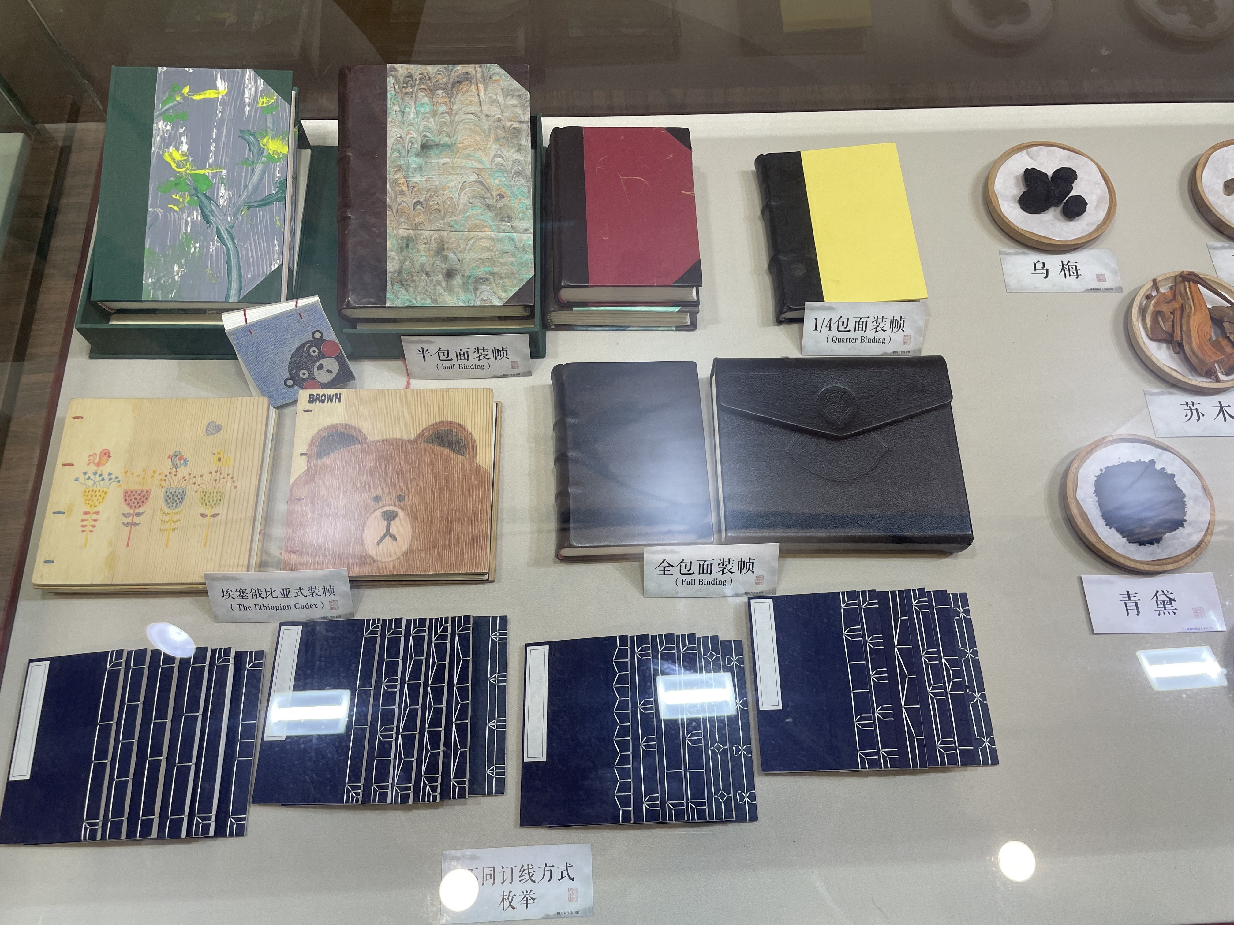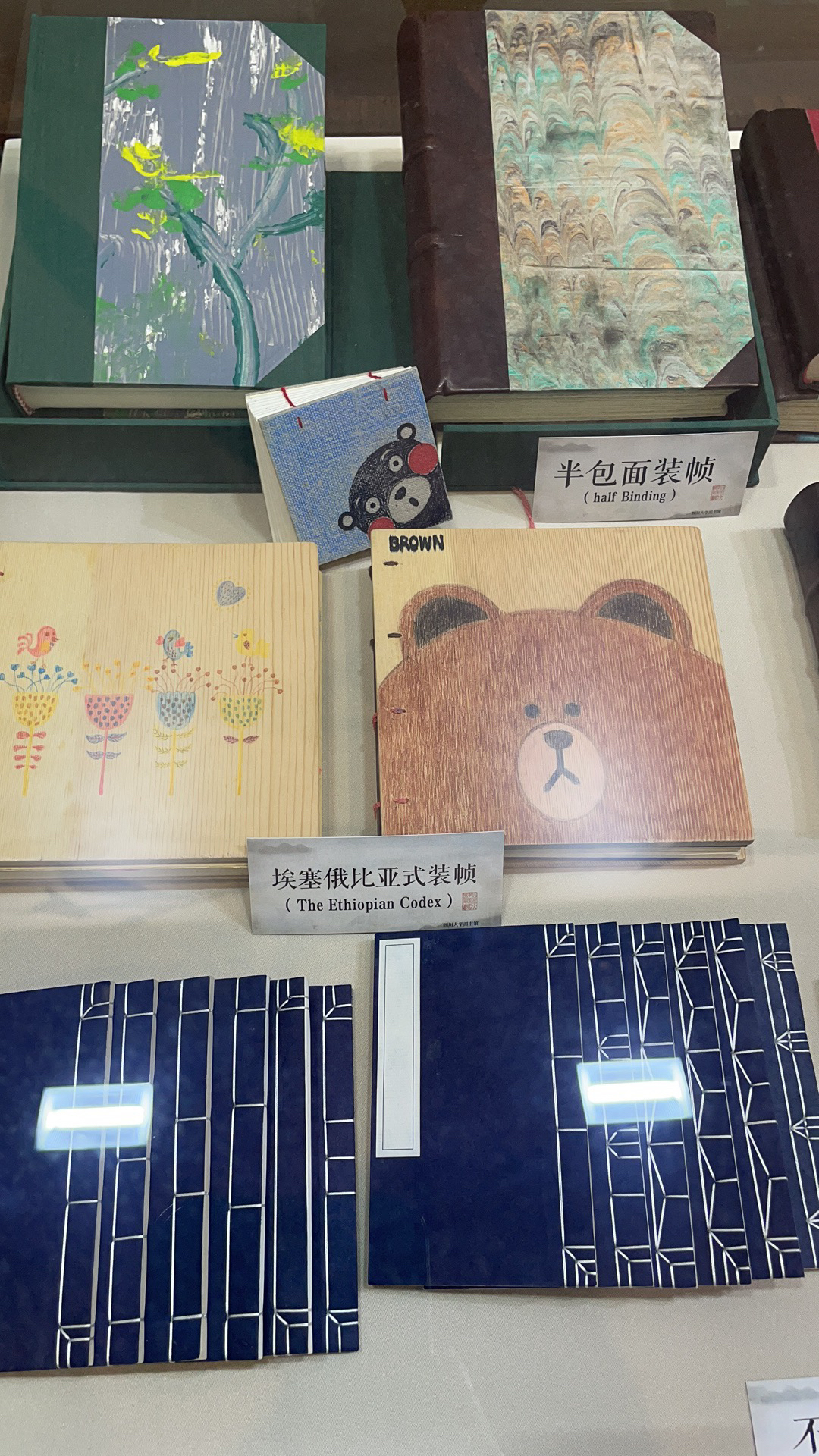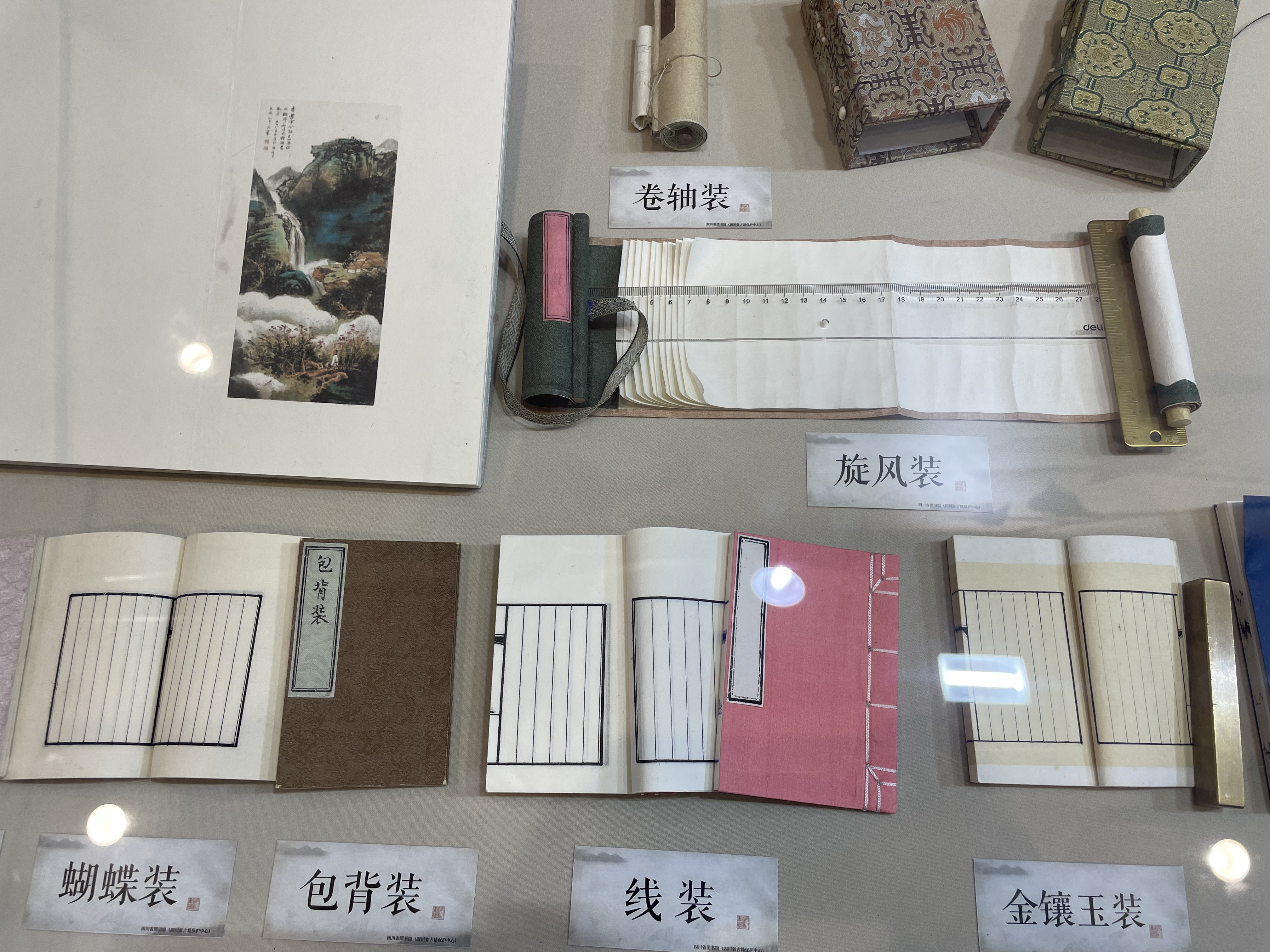 现场还展出了金镶玉装、旋风装、卷轴装、包背装、蝴蝶装等古代典籍的多种装帧方式,以及埃塞俄比亚式装帧、半包面装帧、全包面装帧等现代书籍装帧方式。