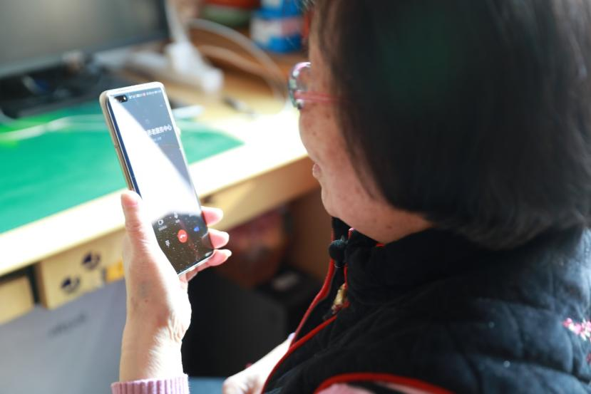 翁淑琴接听养老服务中心的“智能外呼“电话