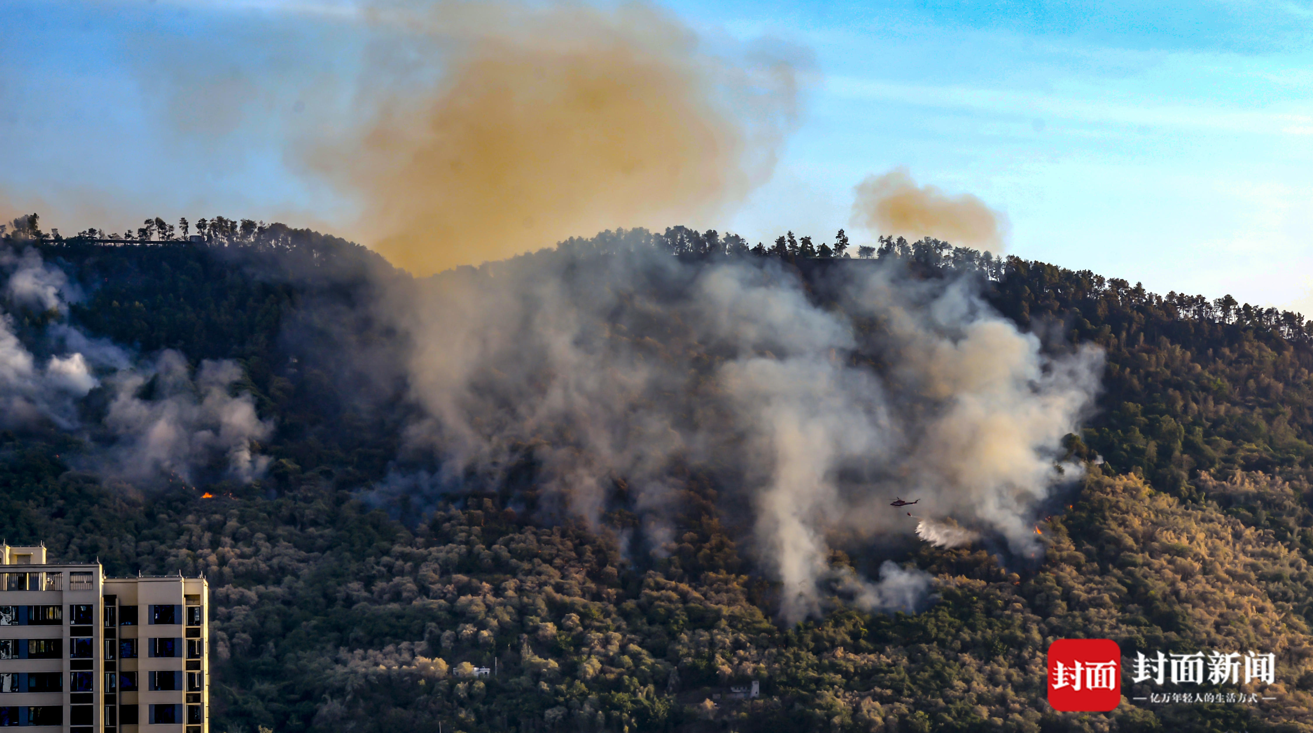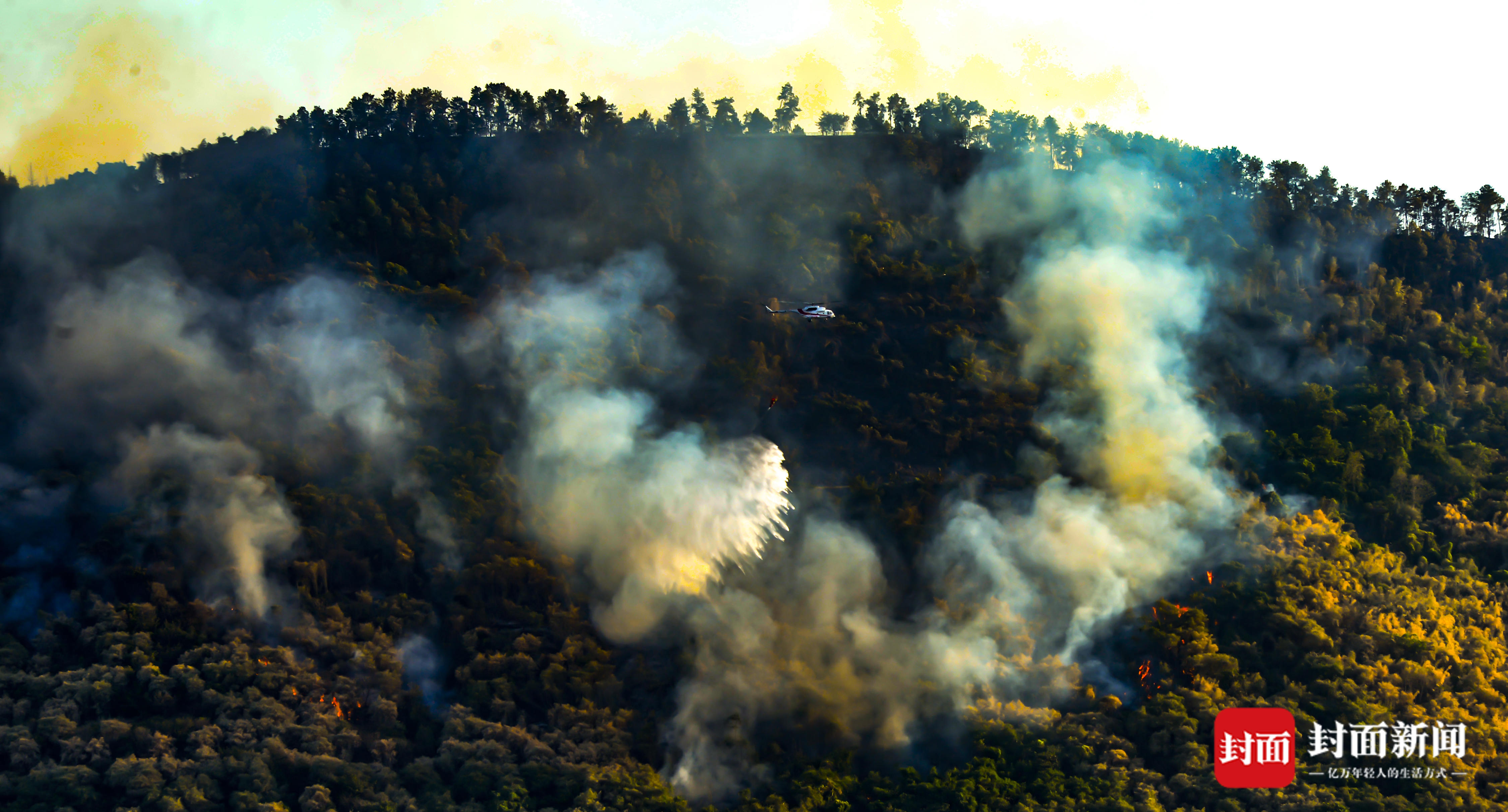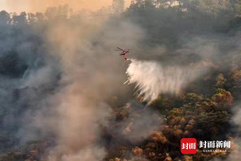 8月17日晚,重庆涪陵江北街道北山坪突发大火。尽管没有接到人员伤亡的报告,但由于过火面积大,突如其来的山火牵动着不少涪陵市民的心。封面新闻接到涪陵市民毛先生发来的一组救援图片。他告诉封面新闻,18日一早开始,救援直升机就开始从长江取水后喷洒到山火发生区域,极大地提升了灭火效率,目前已经基本看不到明火。
