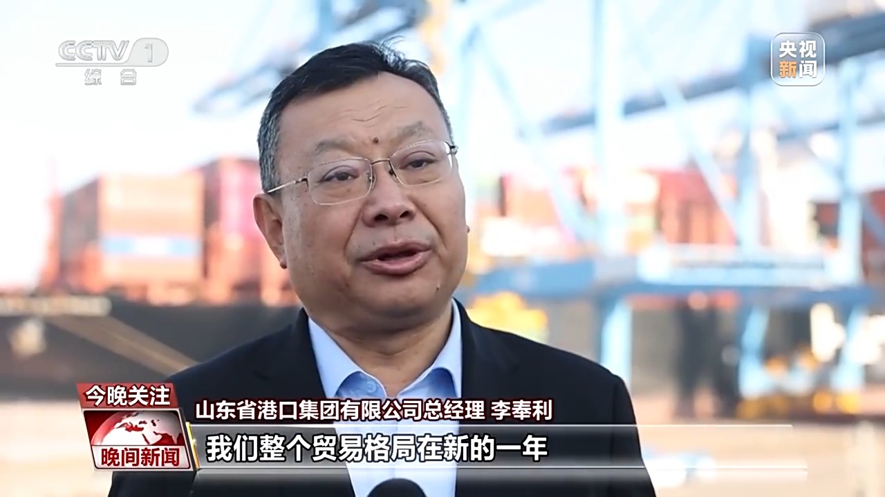 山东省港口集团有限公司总经理 李奉利:我们整个外贸格局在新的一年,我相信还有很好的发展,在海向还是增航线、增班轮、拓中转,在内陆我们也是开班列、建陆港、拓货源。