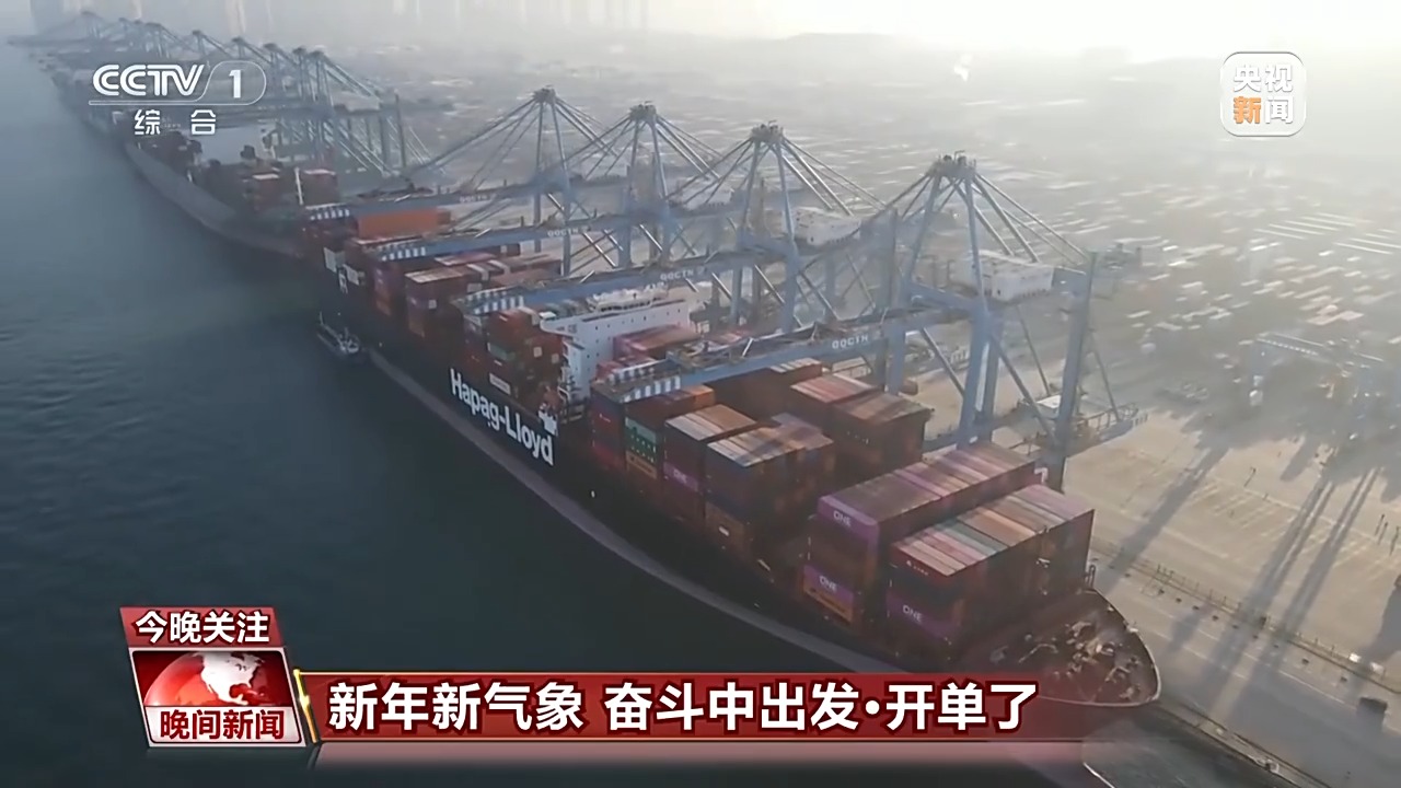 山东台记者 辛鹏:我现在是在青岛港前湾港区集装箱自动化码头,靠泊在105泊位的“乌奈札快航”即将起航,开启中国山东至美国东部的新年首航之旅。