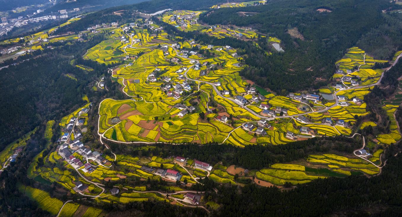 剑阁漫山遍野的油菜花海