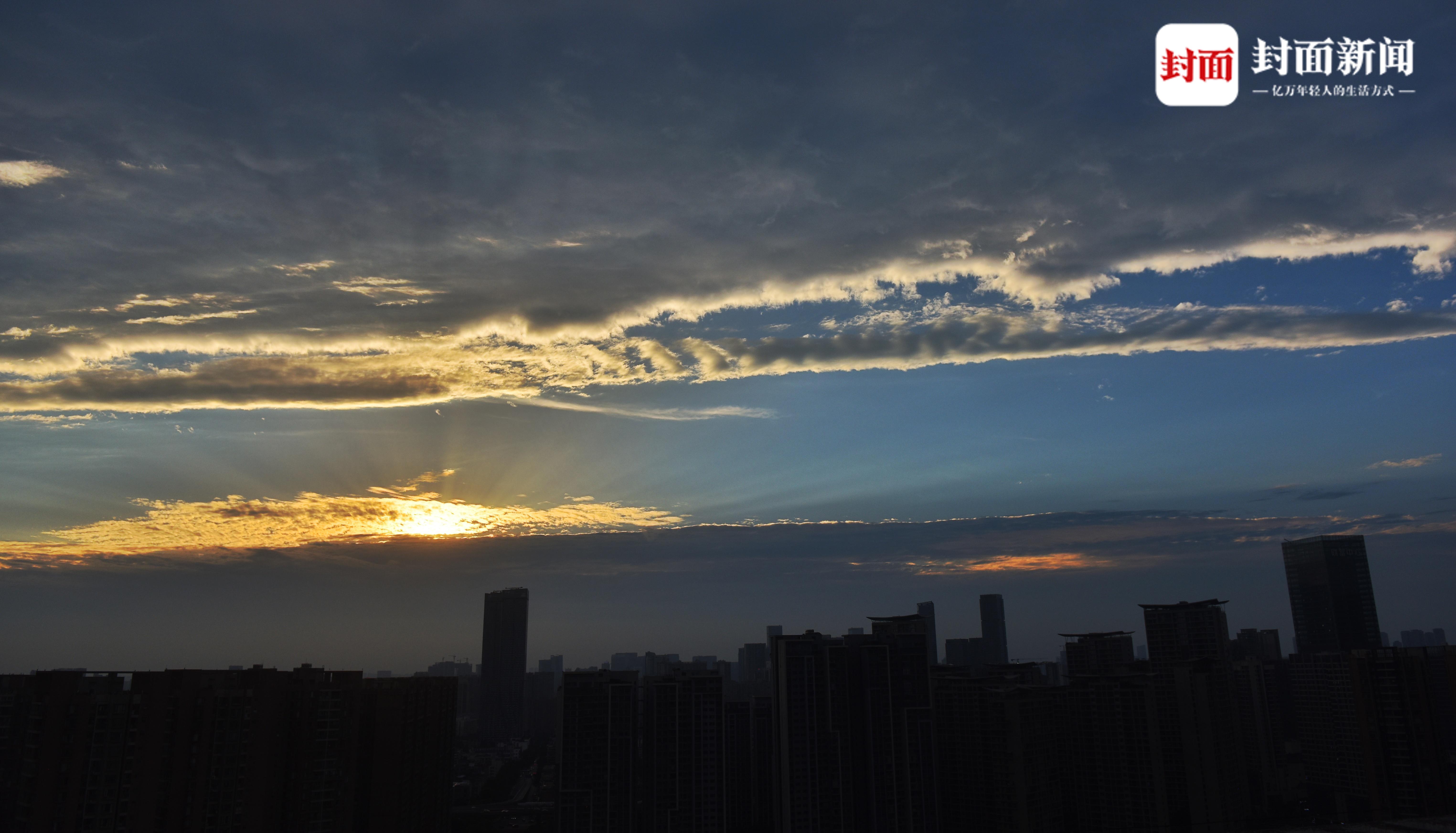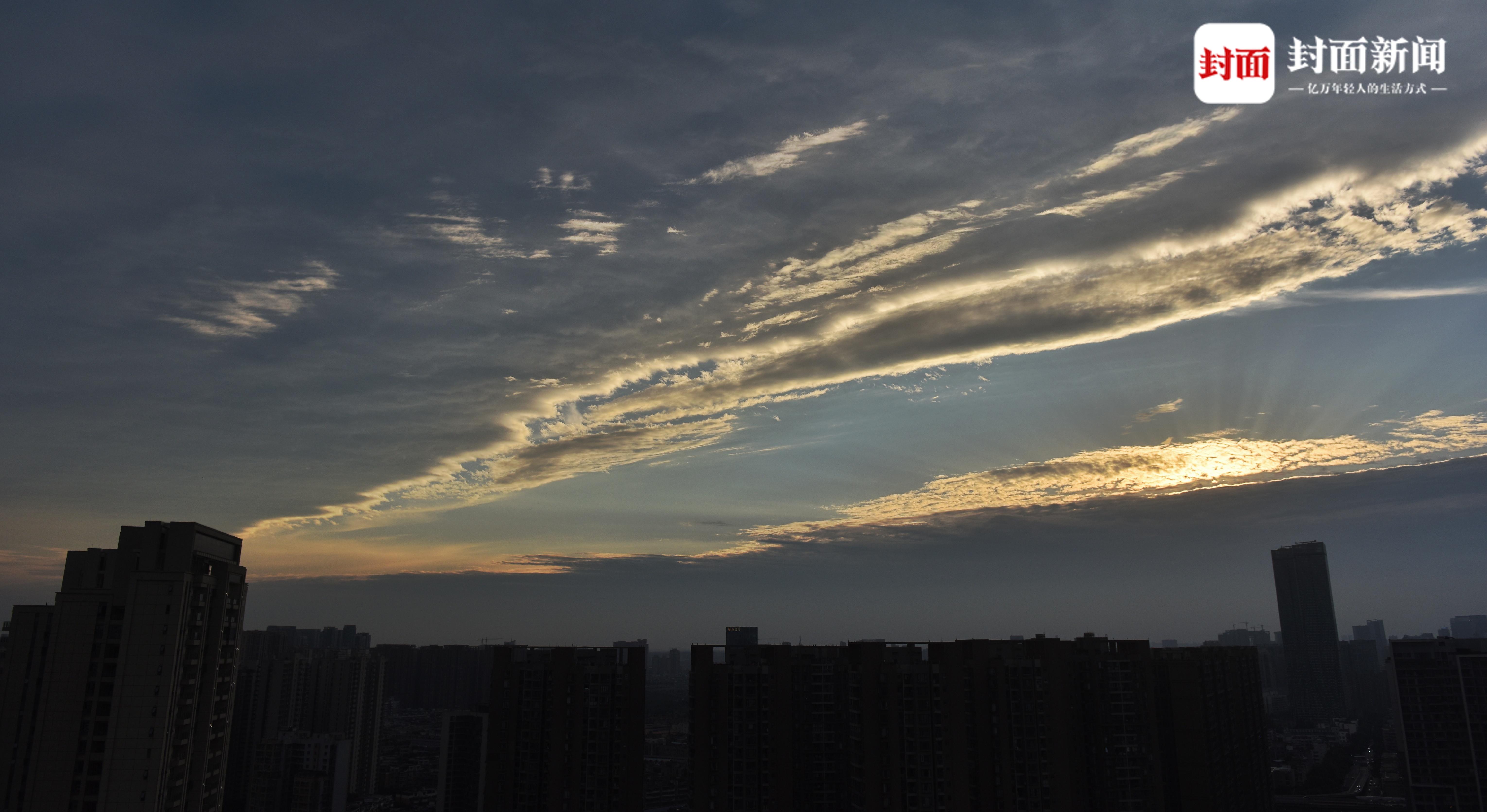7月19日,夏日的天空总会给人们带来惊喜。早上成都还下着雨,天空也是阴沉沉。傍晚时分,天空突然放晴,太阳出来了,夕阳西下晚霞满天。可惜云层太厚,没有能欣赏到日落的景色。