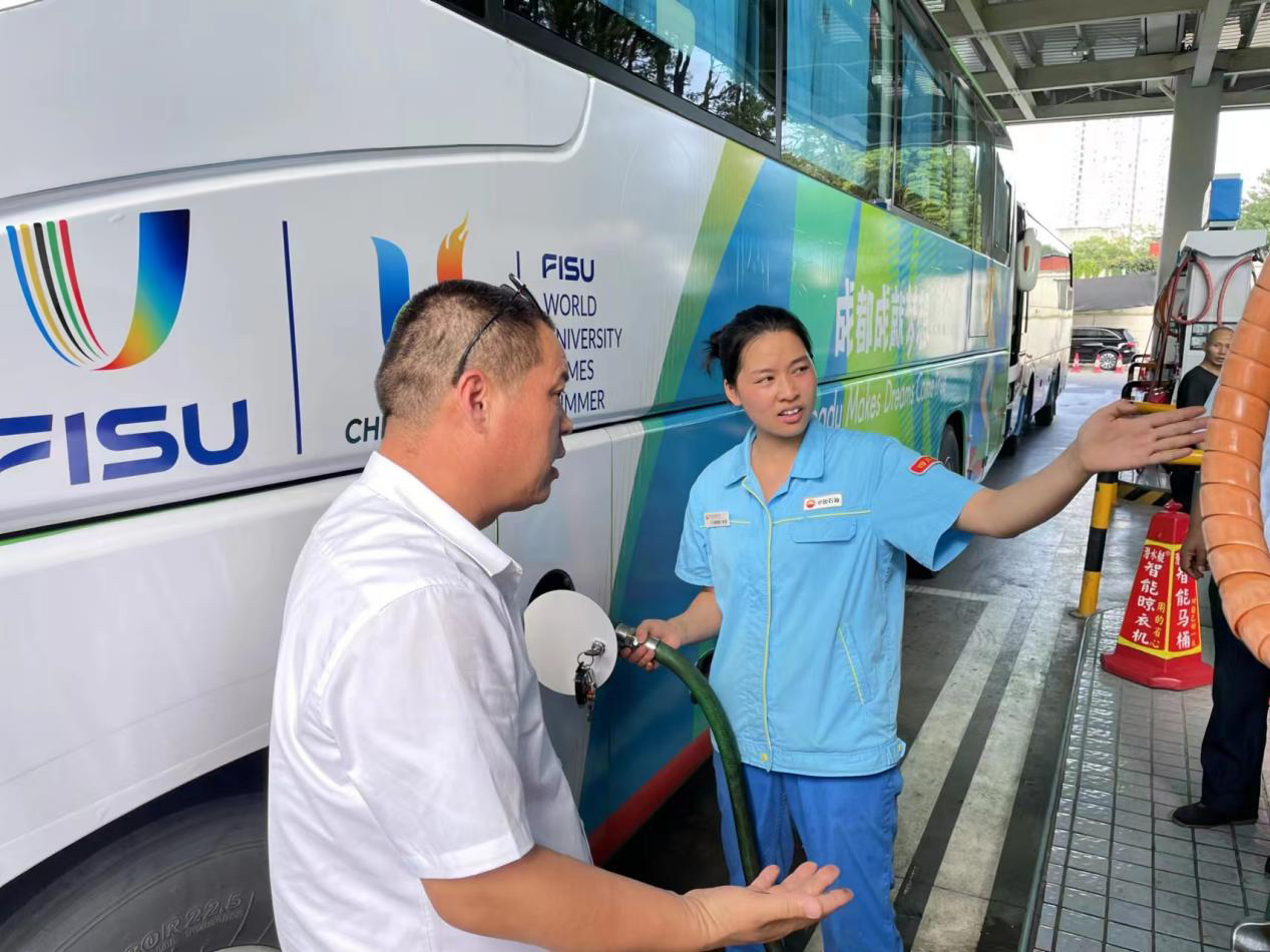 不仅全力护航大运会的能源保供,在大运会期间,中国石油四川销售公司的加油站点,特别是龙泉区的12座加油站的服务质量都力求达到最好的状态。