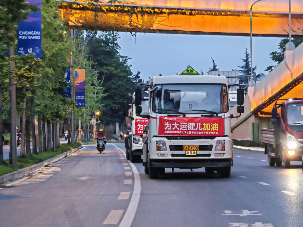 中国石油四川销售公司大运会专供油运往成都大运会现场。宋柏良摄